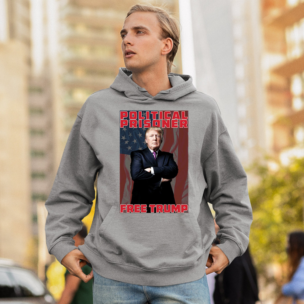 Stand with Trump and showcase your political beliefs with our "Political Prisoner Free Trump" design. This powerful image of Donald Trump against an American flag backdrop is perfect for rallies, political events, or everyday wear. As a dedicated supporter and conservative patriot, let this design speak for your commitment to the America First agenda. It's an ideal gift for like-minded friends and family who share your passion and values.