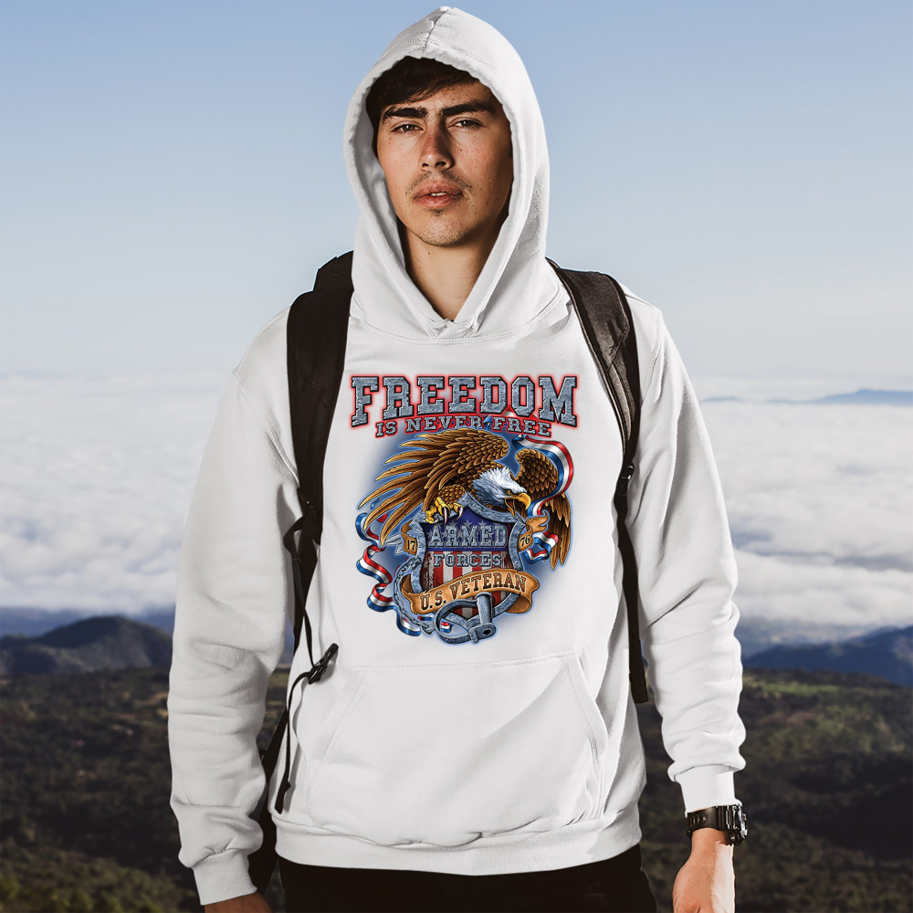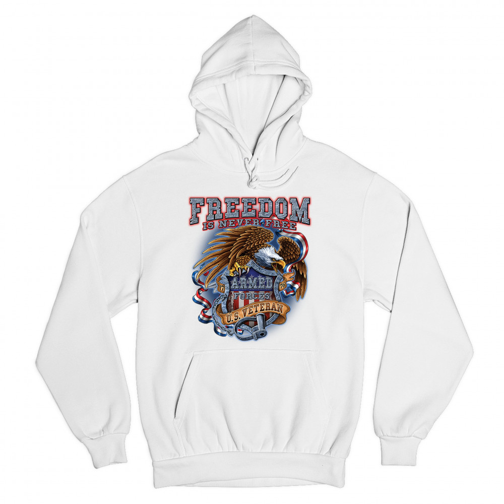 FREEDOM IS NEVER FREE sweatshirt u.s. veteran armed forces military hoodie white