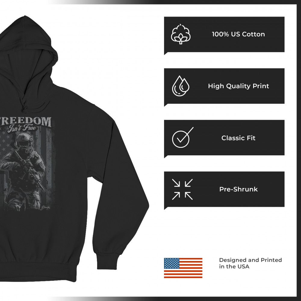 This bold design honors the brave who defend our freedom. Featuring a detailed graphic of an armed soldier against a distressed American flag, it’s perfect for military families, veterans, and patriots alike. Whether you’re wearing it for Memorial Day, Independence Day, or just to show pride, it reflects sacrifice, duty, and American strength.