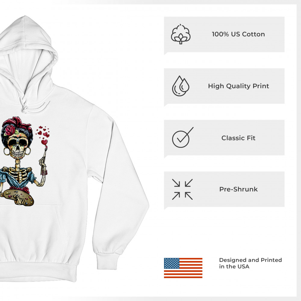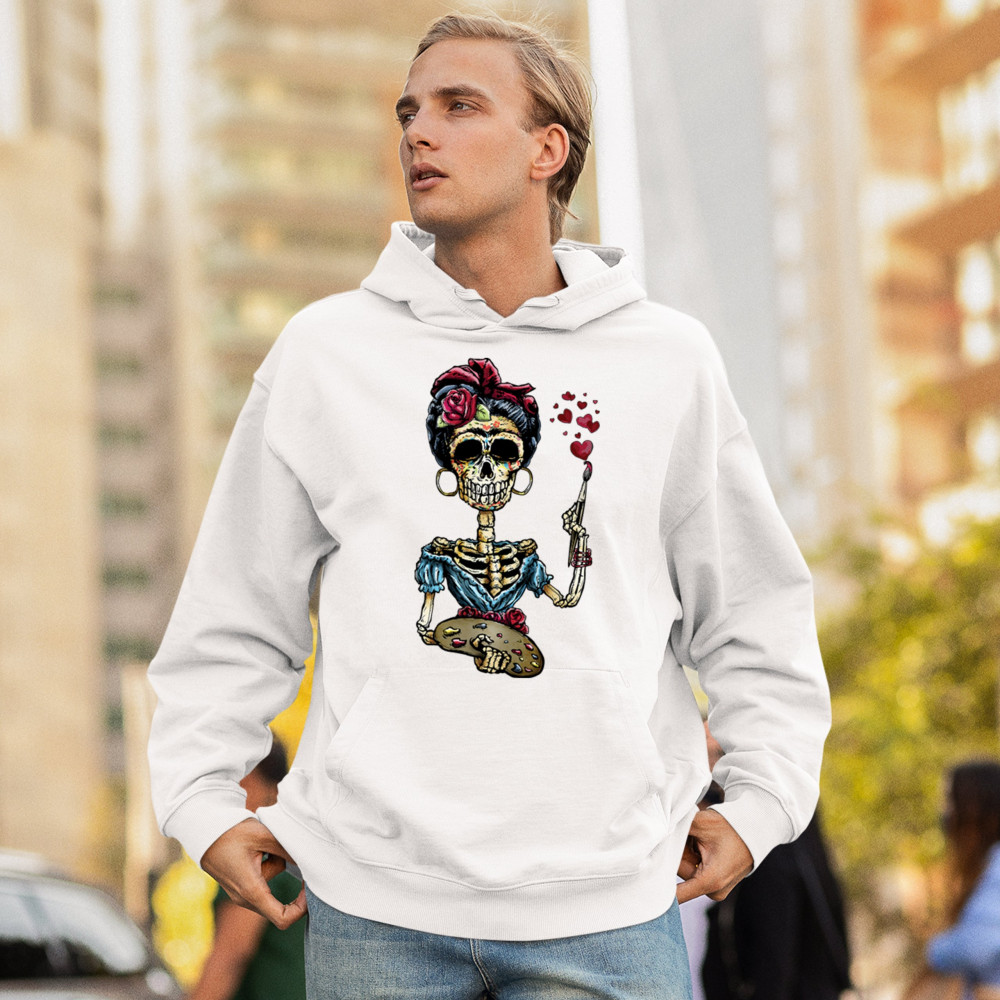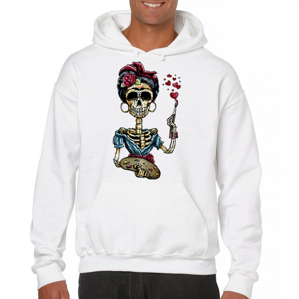 FRIDA KAHLO SUGAR SKULL sweatshirt calavera mexican day of the dead hoodie white