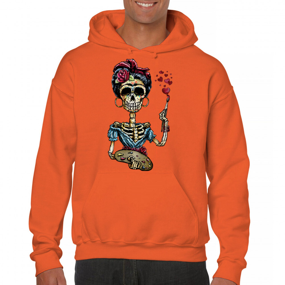 FRIDA KAHLO SUGAR SKULL sweatshirt calavera mexican day of the dead hoodie orange