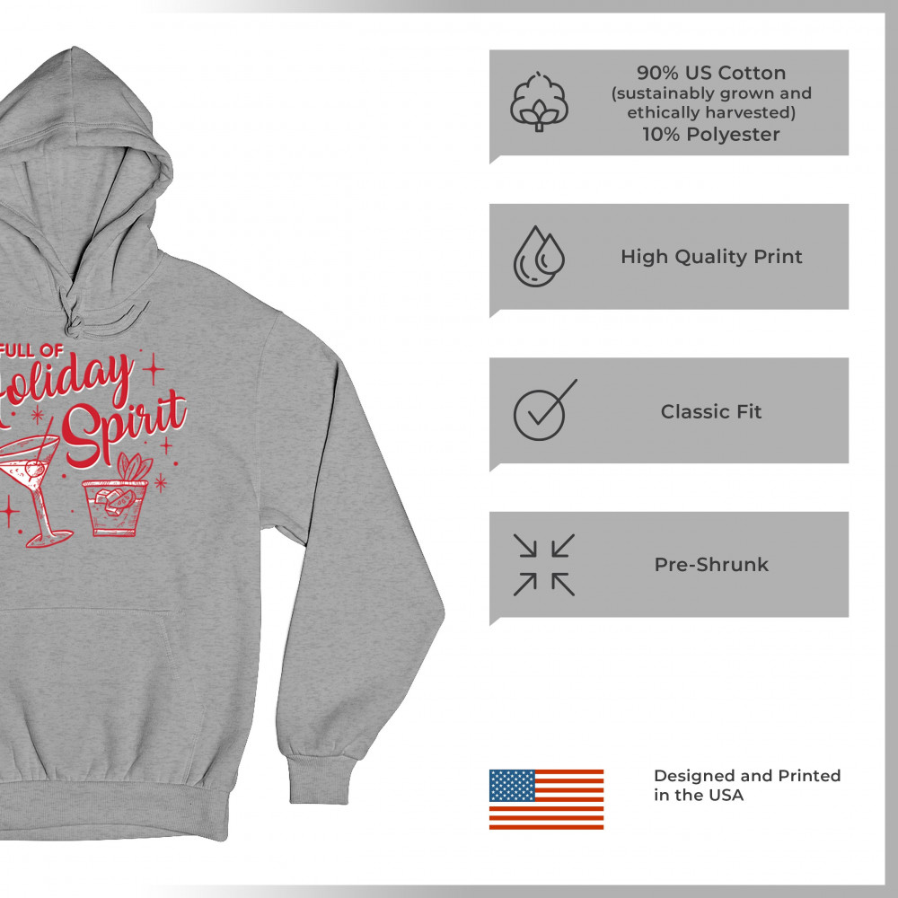 Bring the festive vibes to your holiday season with the "Full of Holiday Spirit" design. This playful print is perfect for office parties, secret Santa gifts, and cozy gatherings, adding a fun and jolly touch to any holiday event. Ideal for matching pajamas, ugly sweater contests, or as a unique present, it’s crafted to spread cheer and humor. From Xmas morning to holiday parties, this design is all about making merry memories with a festive flair.