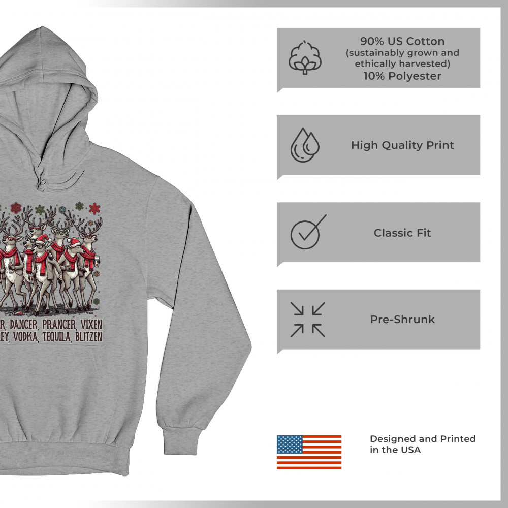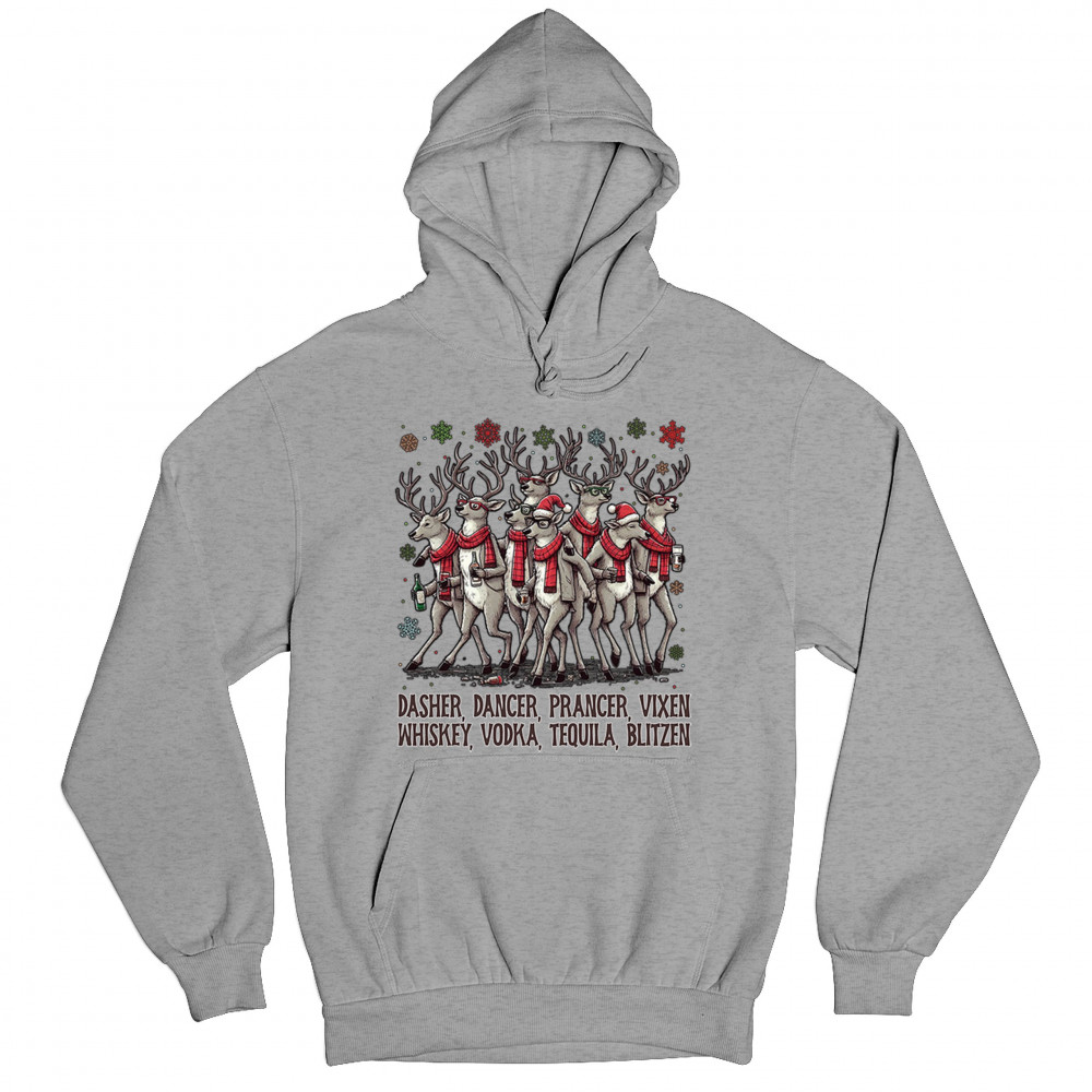 This funny holiday design features a squad of drinking reindeer carrying bottles and dressed in scarves for the ultimate Christmas party vibe. Great for bar crawls, office parties, winter gatherings, adult holiday events, white elephant exchanges, festive nights out, and anyone who loves spirited Christmas humor with a cheeky personality.