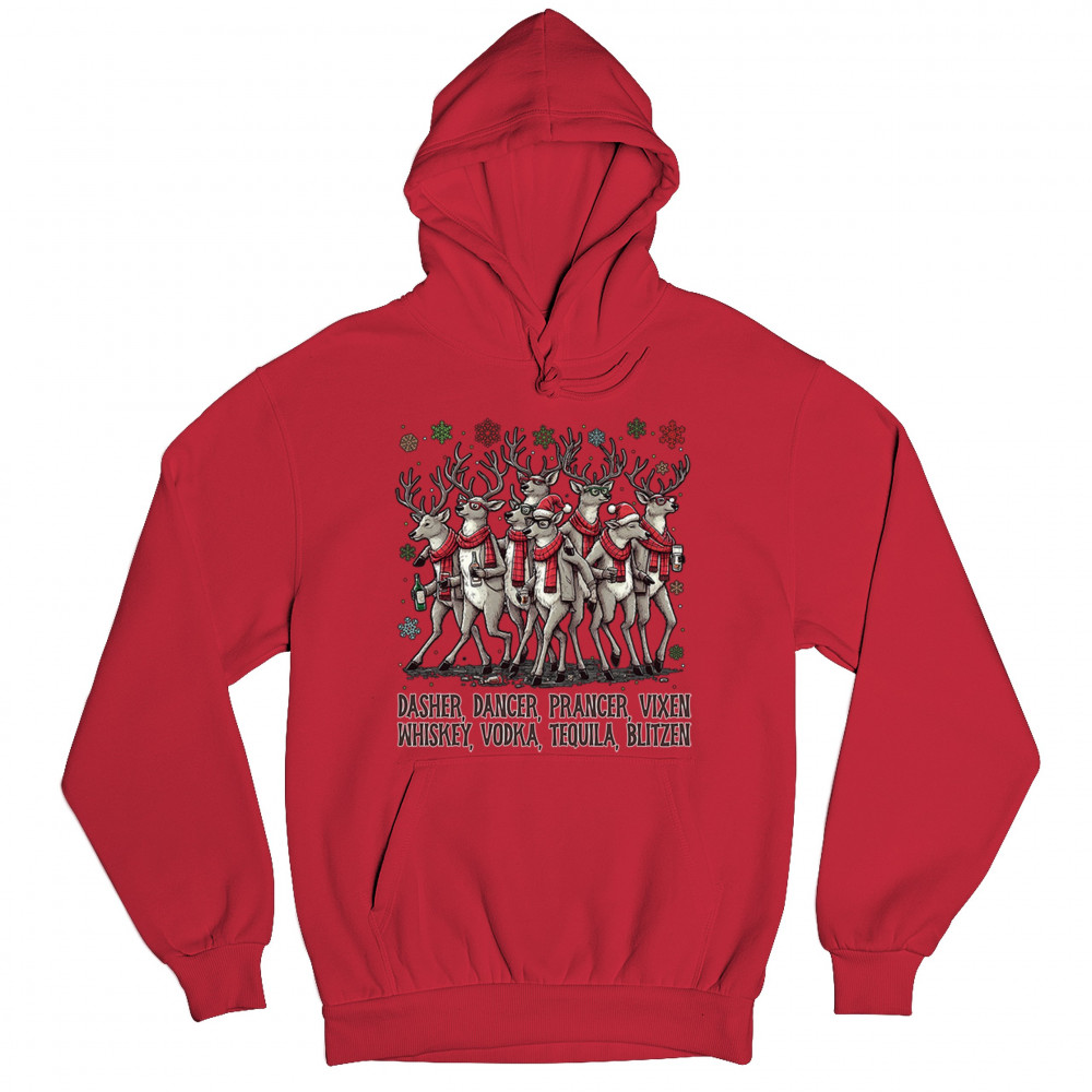 This funny holiday design features a squad of drinking reindeer carrying bottles and dressed in scarves for the ultimate Christmas party vibe. Great for bar crawls, office parties, winter gatherings, adult holiday events, white elephant exchanges, festive nights out, and anyone who loves spirited Christmas humor with a cheeky personality.