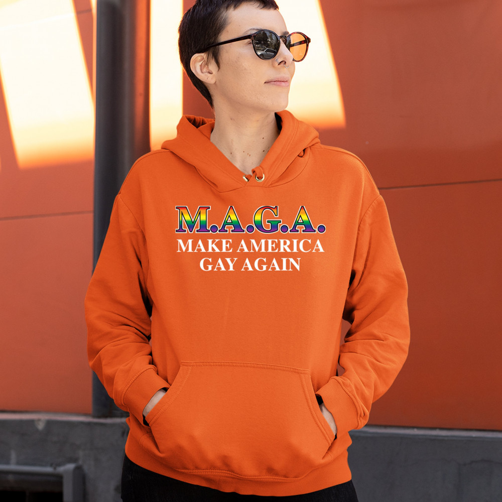FUNNY MAGA ANTI TRUMP sweatshirt lgbt rainbow pride equality hoodie orange