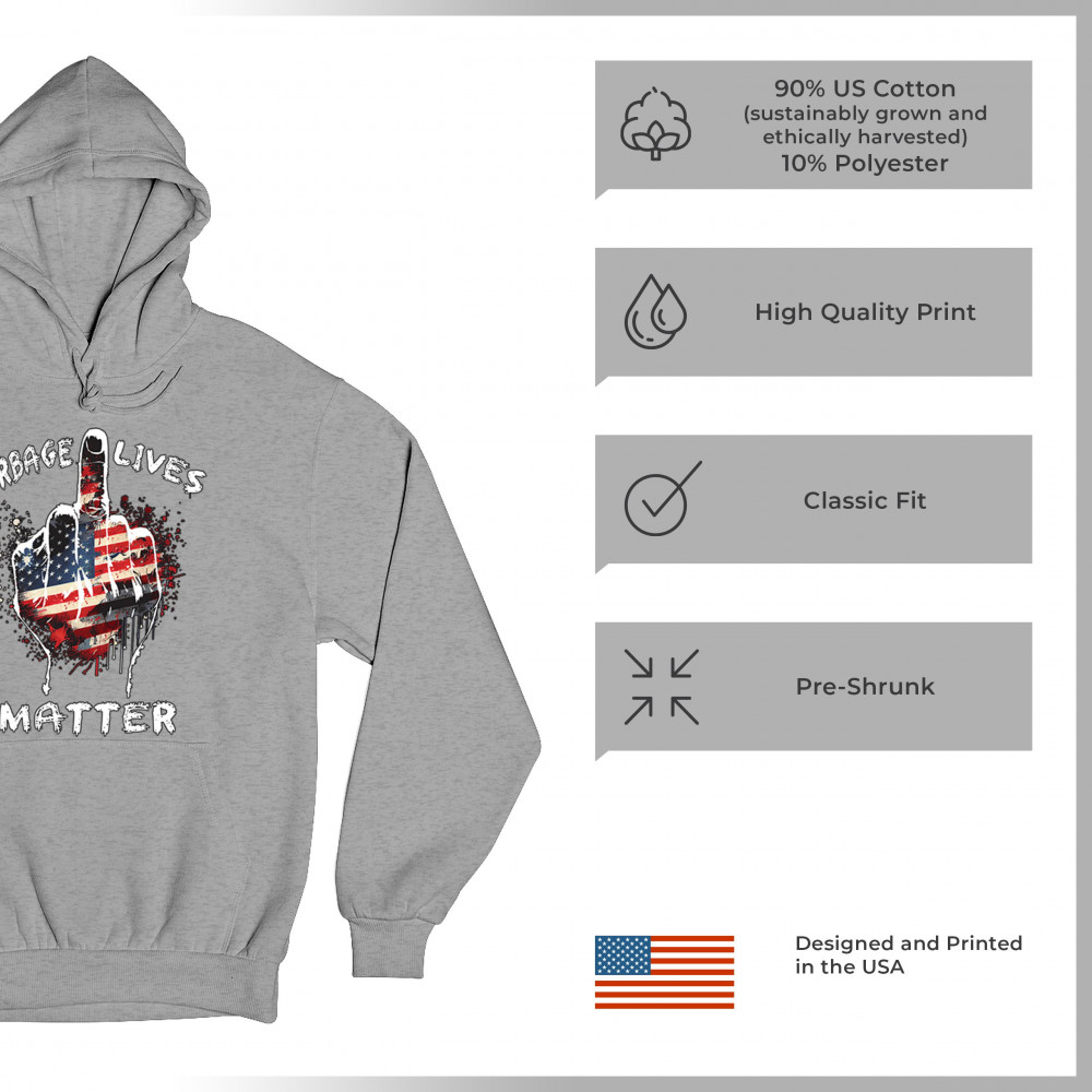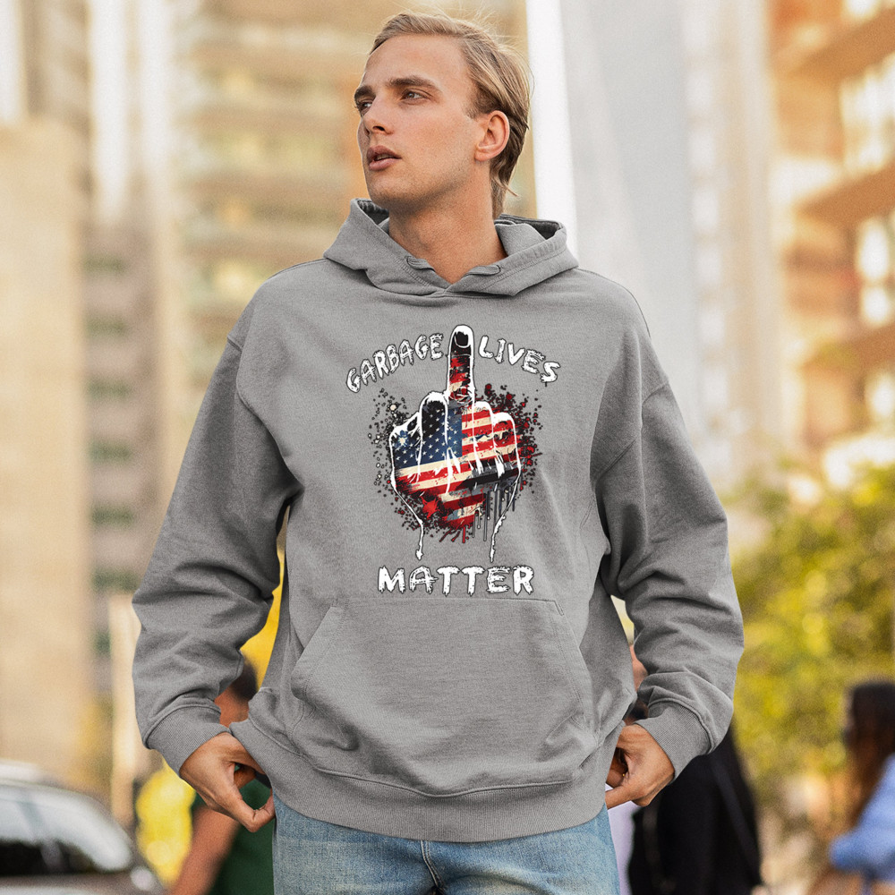 The "Garbage Lives Matter" design is a fearless expression of American values and pride. With the American flag as its centerpiece, this bold and patriotic design speaks volumes to Trump supporters, conservatives, and those who believe in the people's mandate. Join the fight for America First, never surrender, and celebrate the Red Wave movement with this striking statement piece.