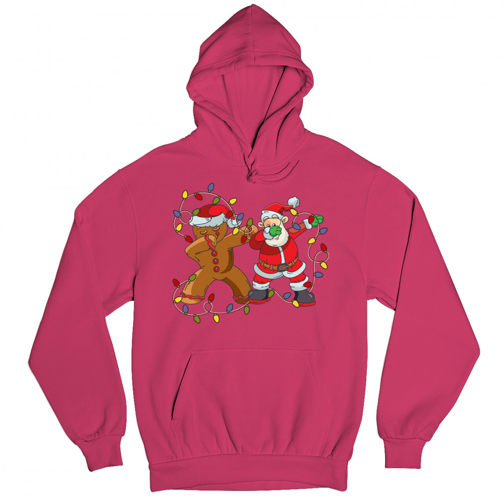 GINGERBREAD MAN AND SANTA CLAUS DAB DANCE sweatshirt merry christmas hoodie pink