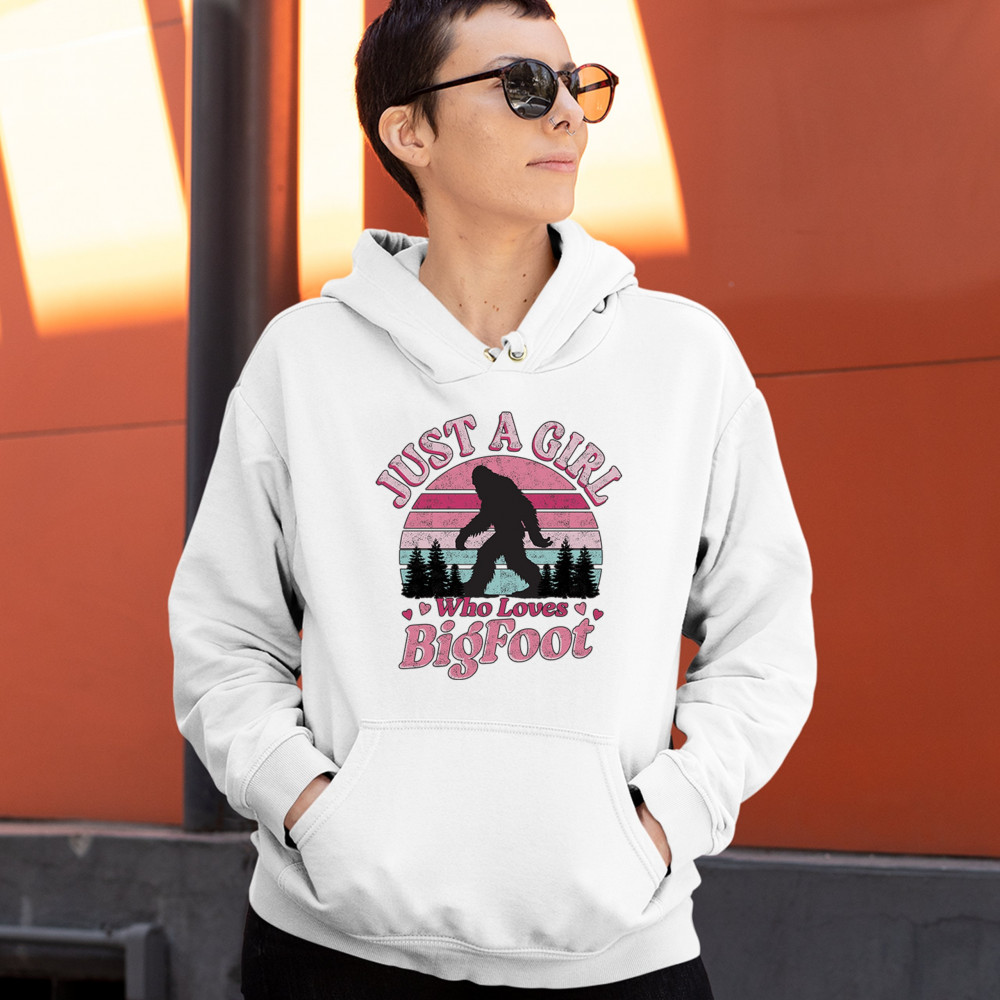 Celebrate your love for all things cryptid with this cute and retro Bigfoot design. Perfect for girls obsessed with Sasquatch, this playful graphic features a pink and teal sunset, ideal for fans, campers, explorers, and believers. A fun gift for paranormal lovers and outdoorsy adventurers alike.