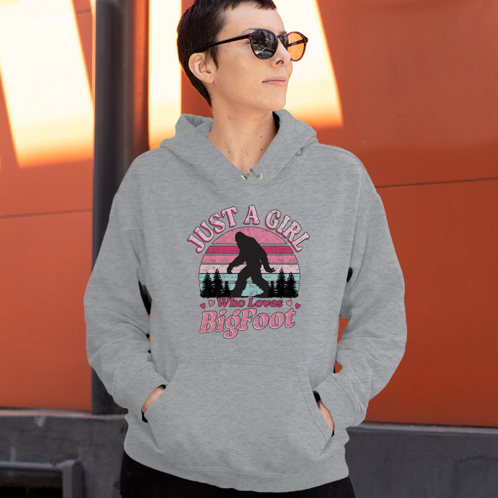 Celebrate your love for all things cryptid with this cute and retro Bigfoot design. Perfect for girls obsessed with Sasquatch, this playful graphic features a pink and teal sunset, ideal for fans, campers, explorers, and believers. A fun gift for paranormal lovers and outdoorsy adventurers alike.
