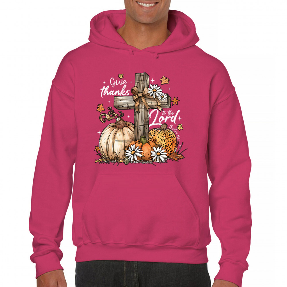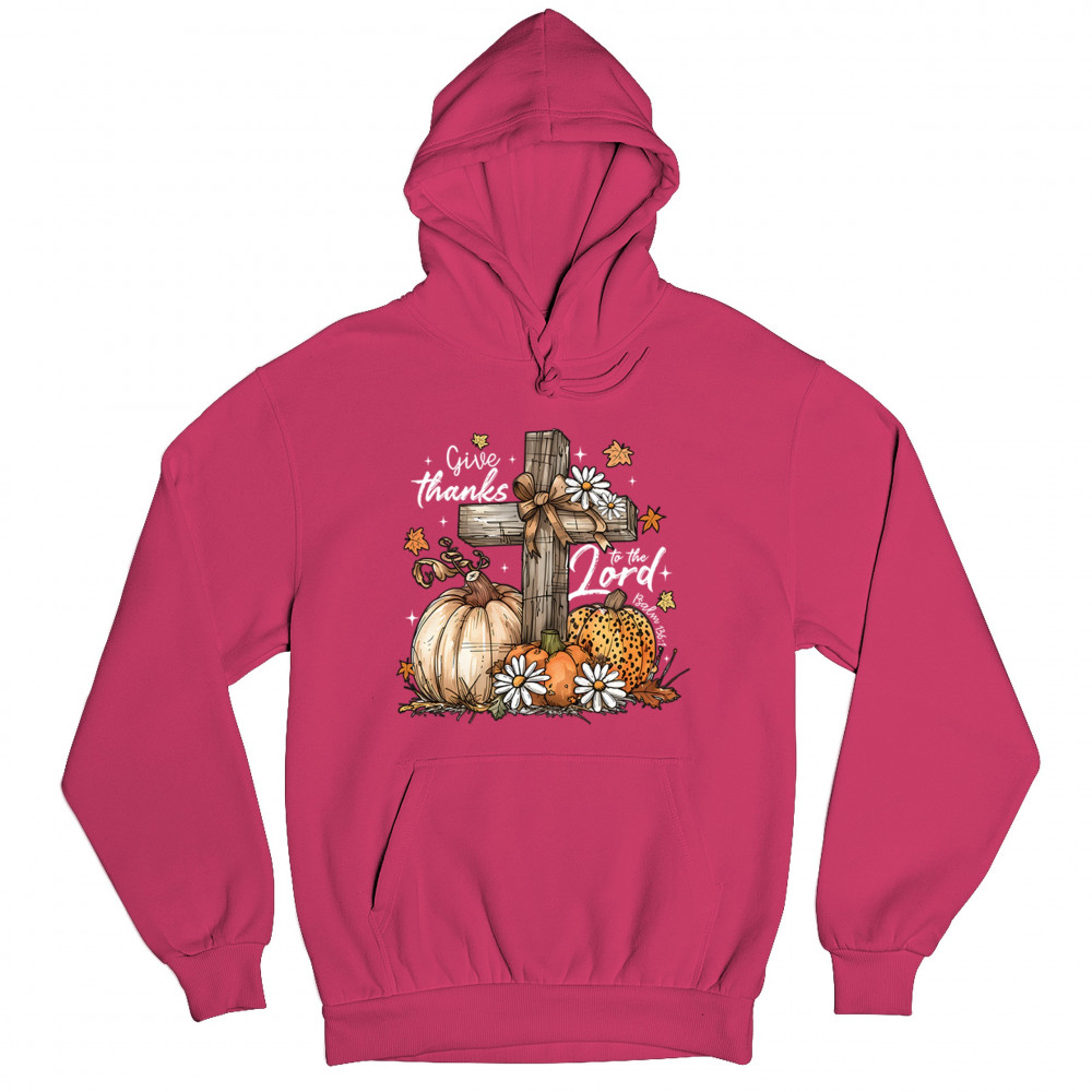 GIVE THANKS TO THE LORD unisex hoodie pumpkin harvest thanksgiving day pink