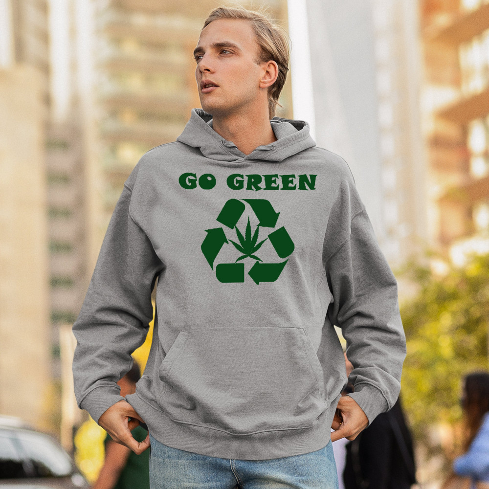 GO GREEN sweatshirt funny weed smoking marijuana 420 ivxx pot cannabis hoodie gray
