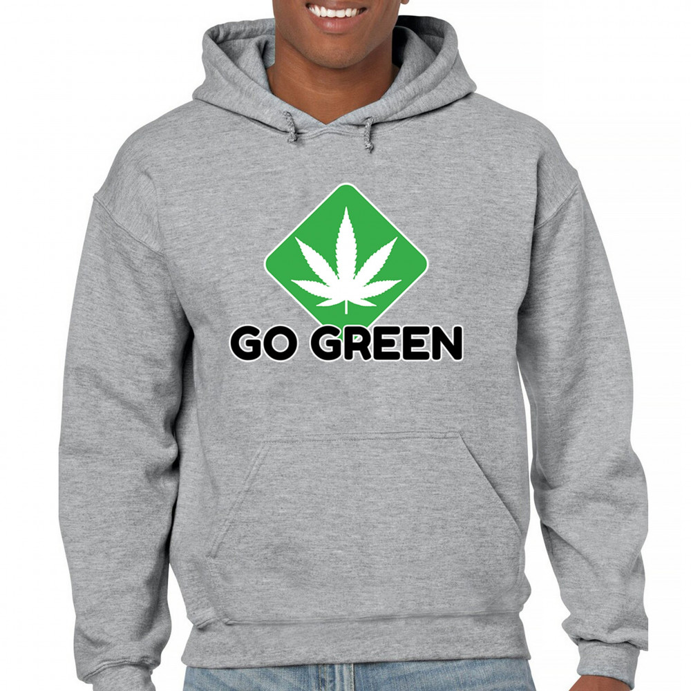Bold Go Green design with cannabis leaf icon. Perfect for 420 fans, eco-conscious wearers, stoners, and marijuana advocates.