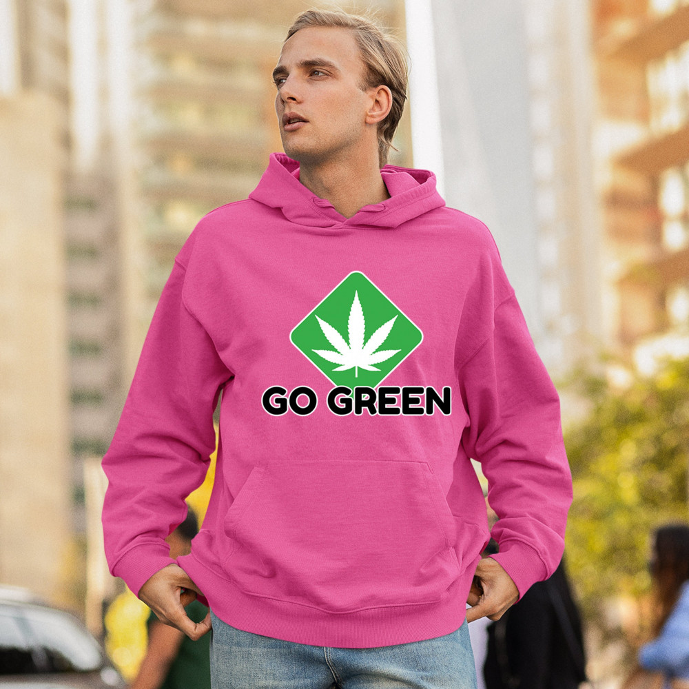 Bold Go Green design with cannabis leaf icon. Perfect for 420 fans, eco-conscious wearers, stoners, and marijuana advocates.