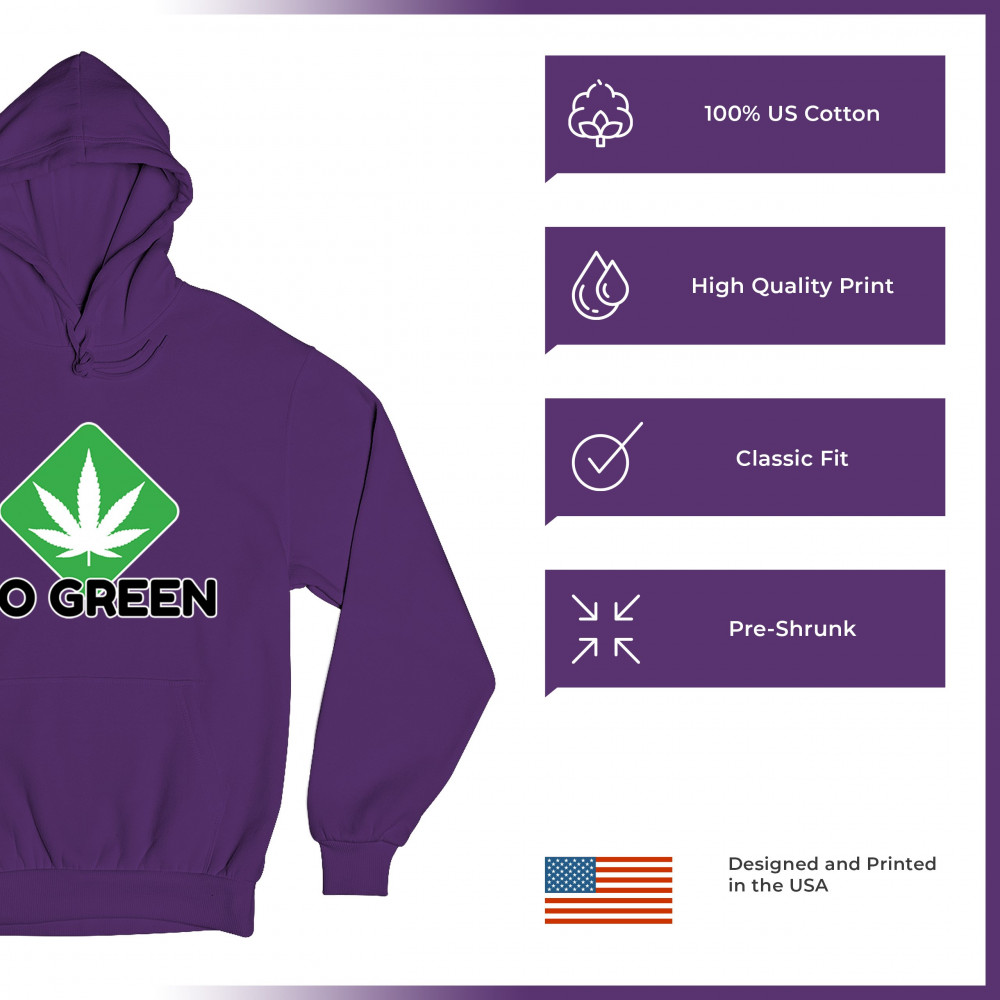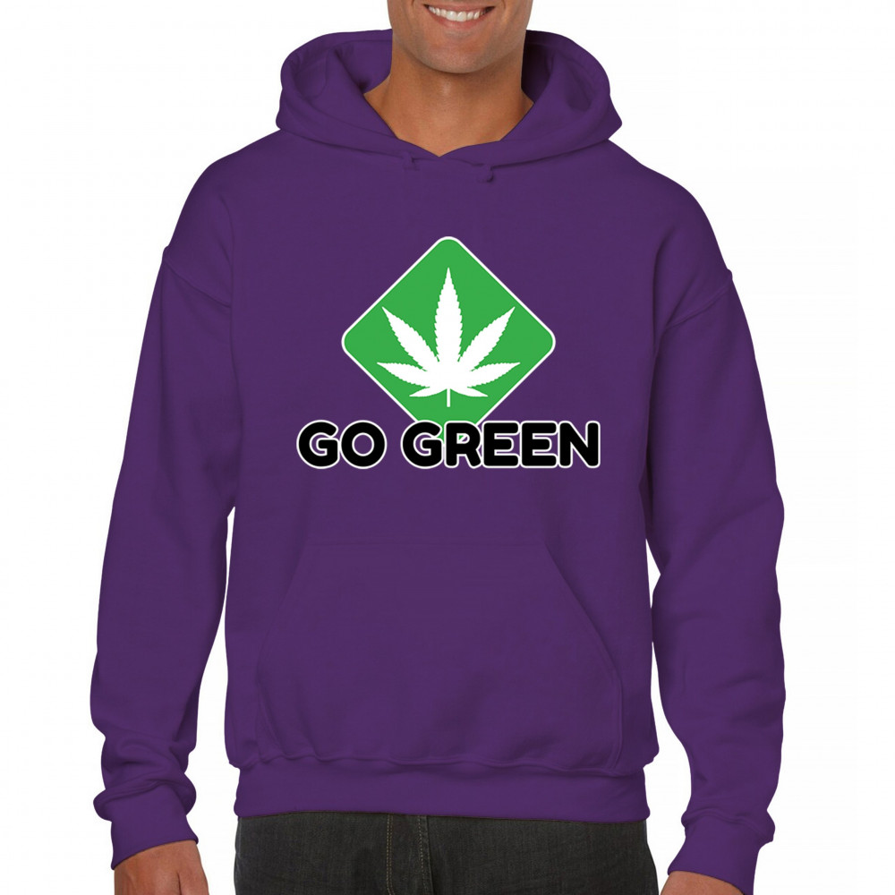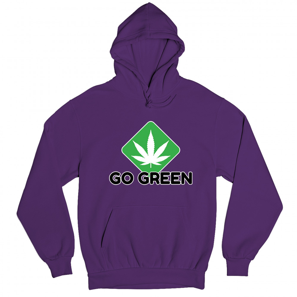 GO GREEN WEED sweatshirt cannabis leaf logo eco 420 marijuana kush thc hoodie purple