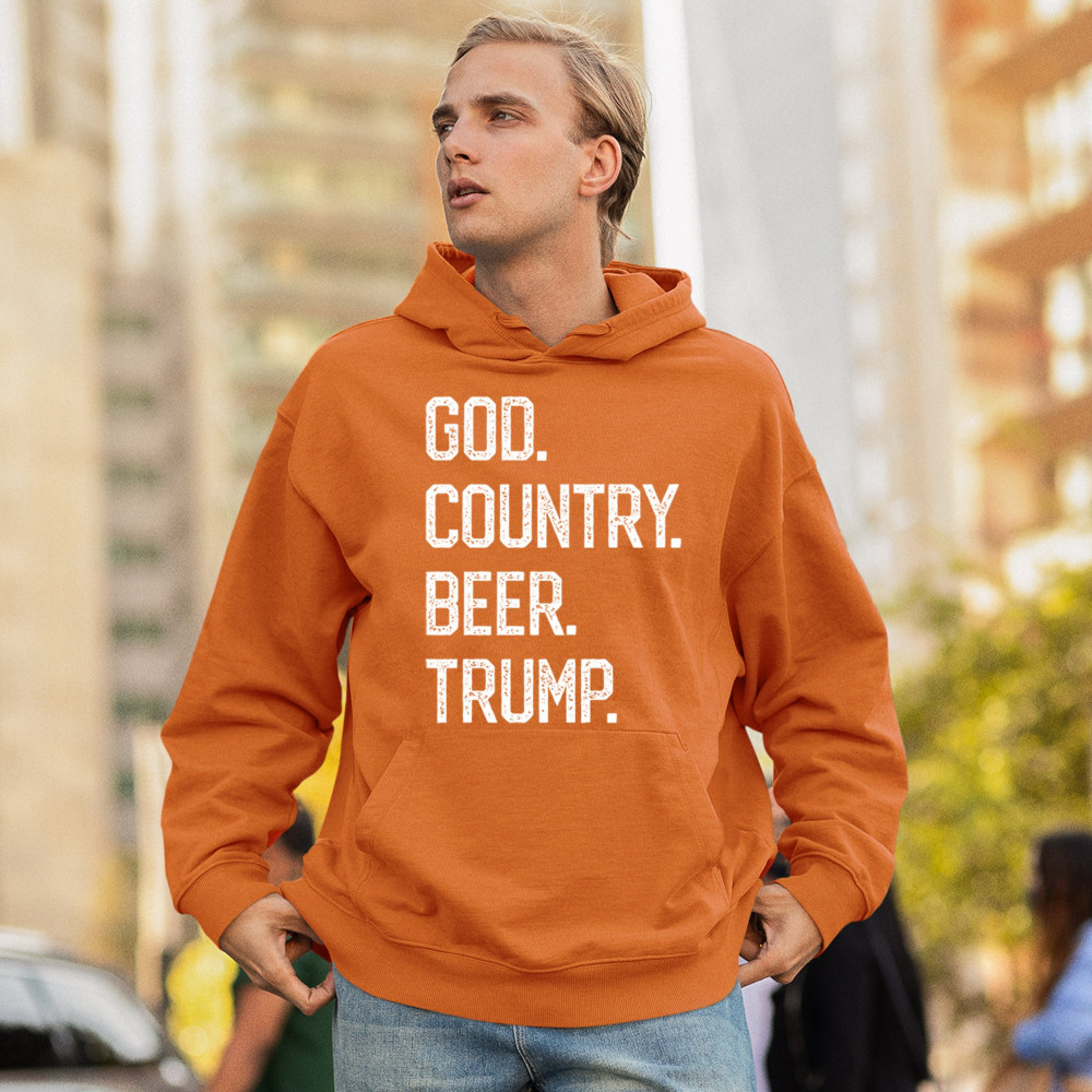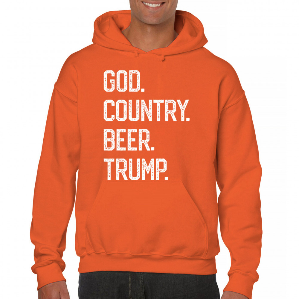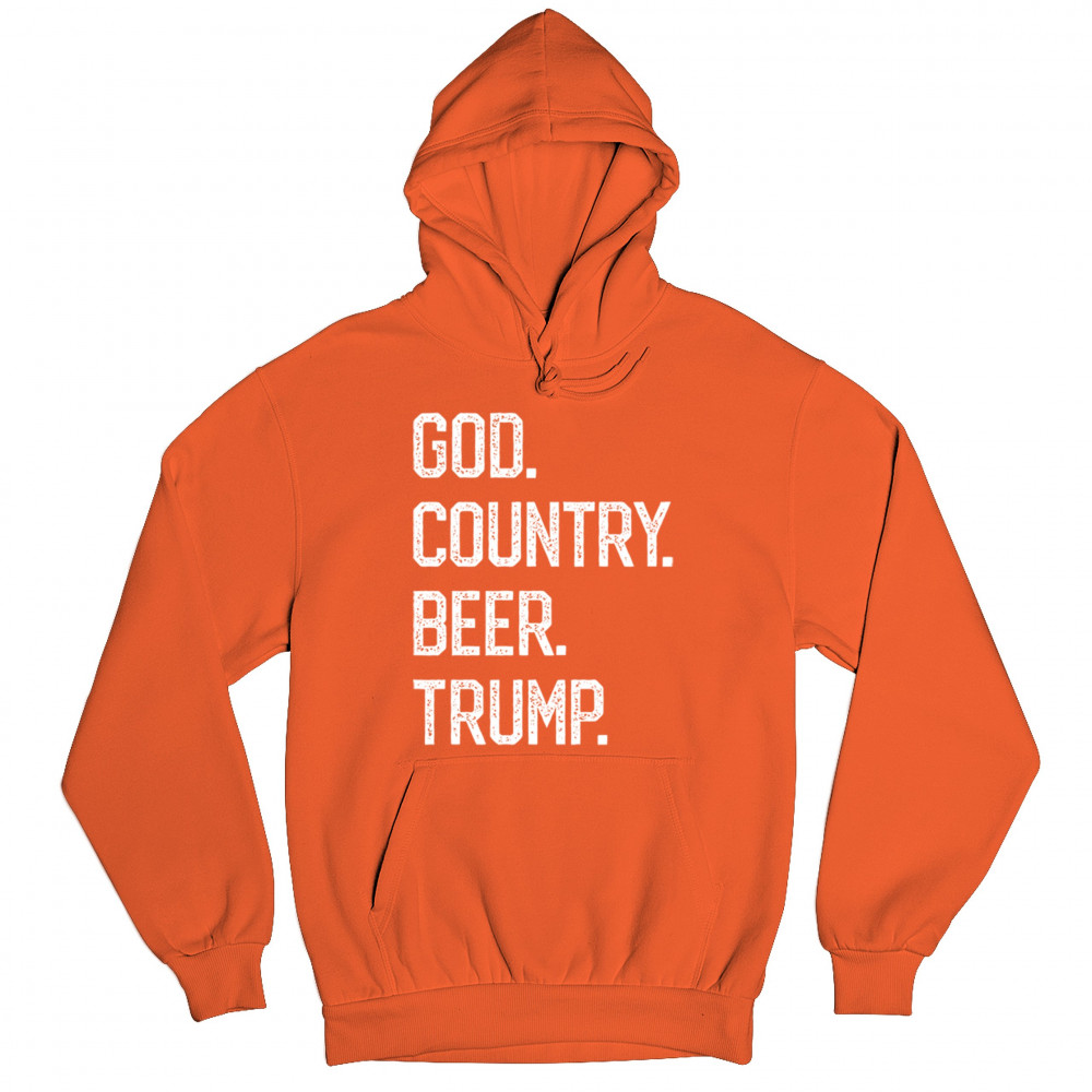GOD COUNTRY BEER TRUMP sweatshirt maga 2024 america first conservative hoodie orange