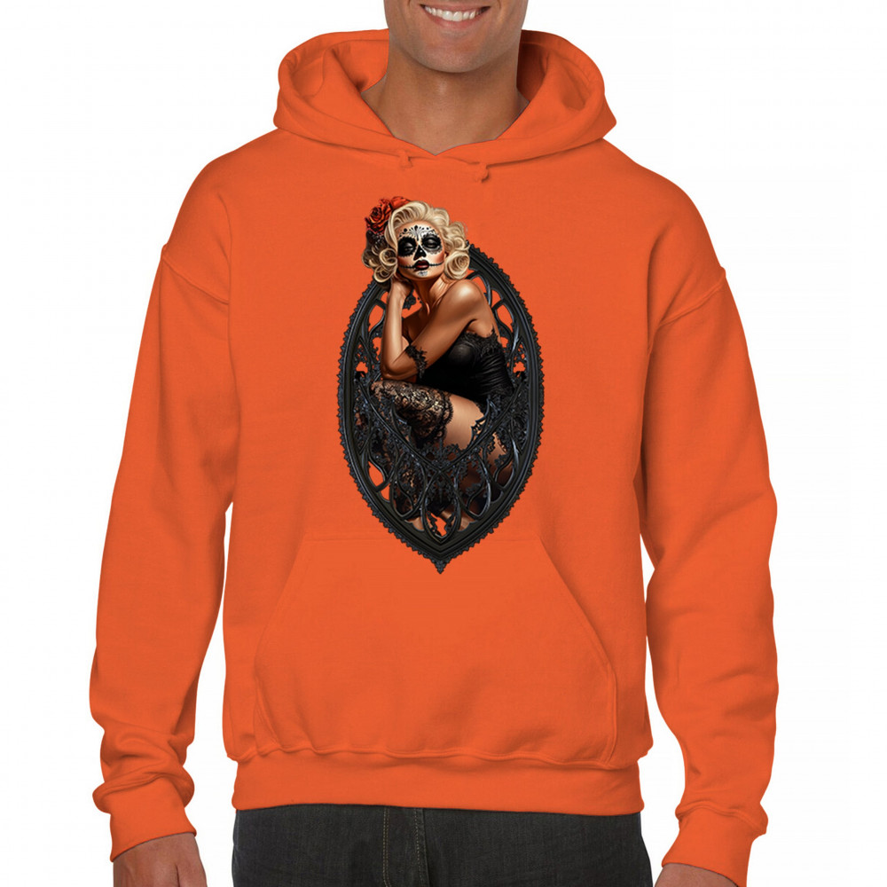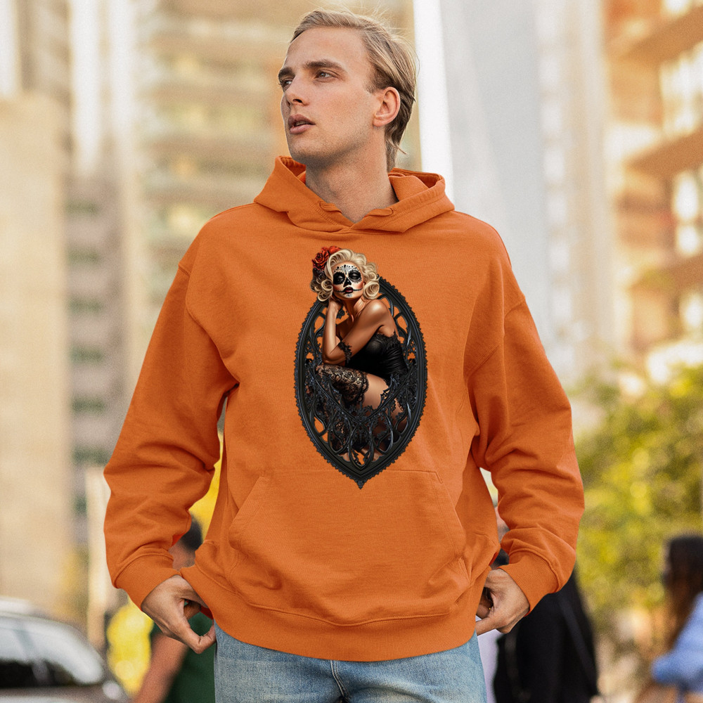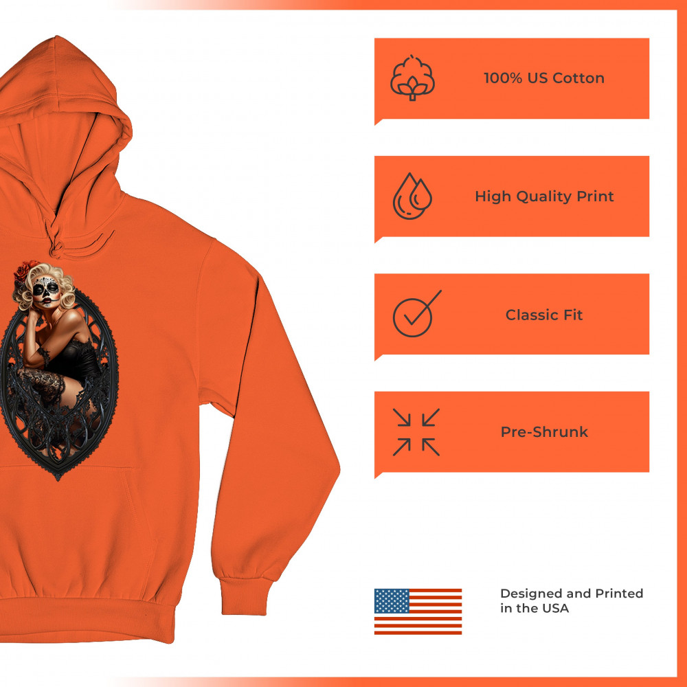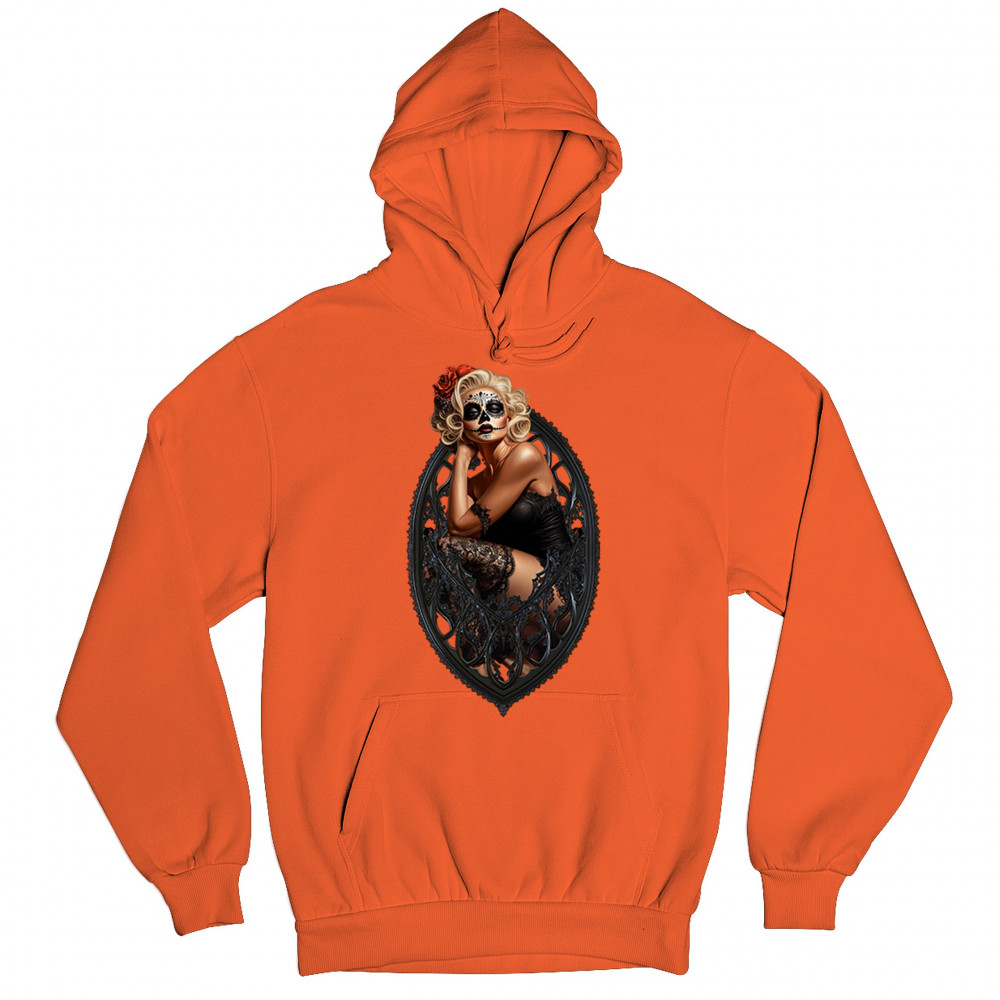 GOTHIC SUGAR SKULL PINUP sweatshirt dia de los muertos dark seductive hoodie orange