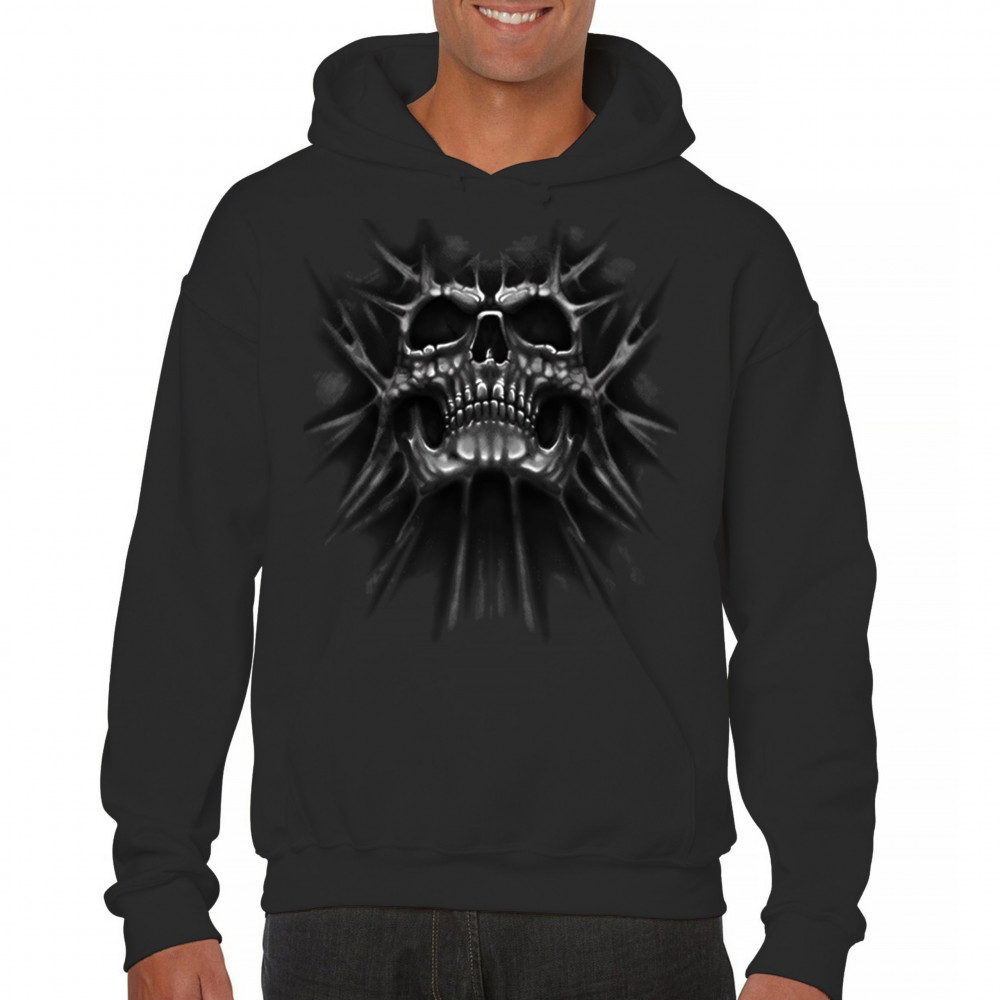 Gothic skull biker shirt with roots design. Perfect for Metalhead, Rock n Roll fans, edgy rebel fashion, and spooky Halloween vibes.