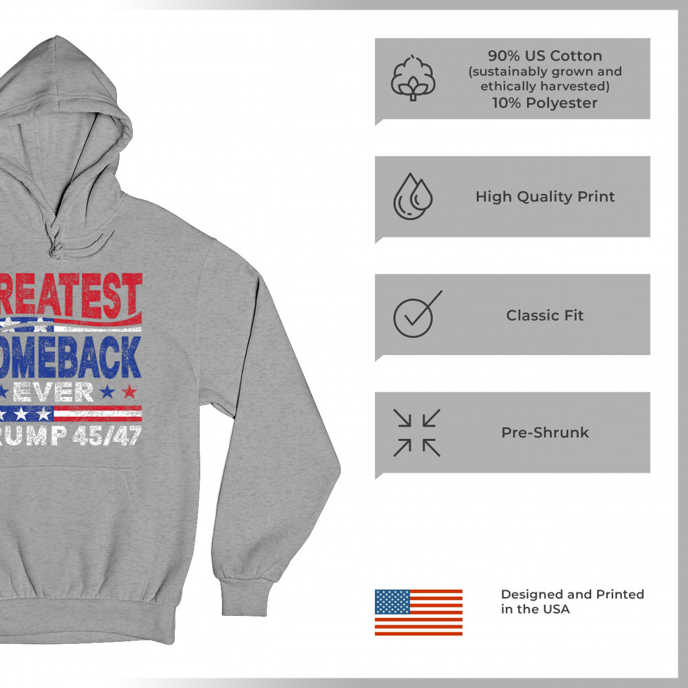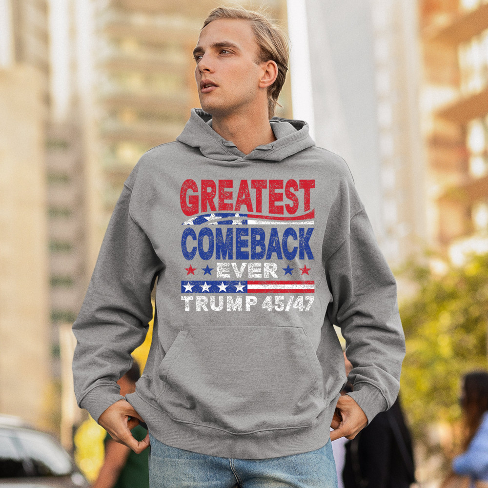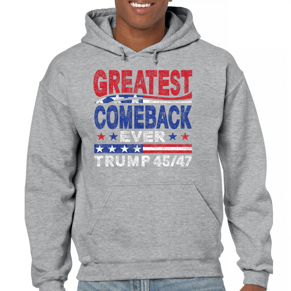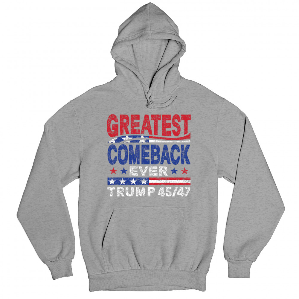 The "Greatest Comeback Ever" design is a tribute to resilience, patriotism, and the fight for American values. Featuring bold patriotic colors and a slogan that embodies the spirit of victory, this design is perfect for Trump supporters and conservatives who believe in never surrendering. Celebrate the leadership of Donald J. Trump as the 45th and 47th president and join the movement for America's future.