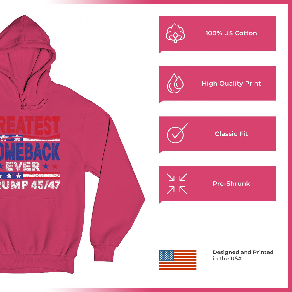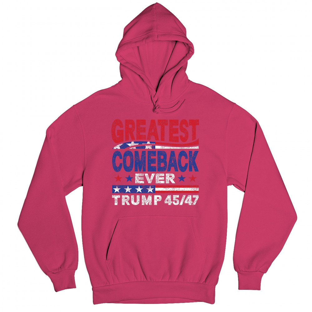 The "Greatest Comeback Ever" design is a tribute to resilience, patriotism, and the fight for American values. Featuring bold patriotic colors and a slogan that embodies the spirit of victory, this design is perfect for Trump supporters and conservatives who believe in never surrendering. Celebrate the leadership of Donald J. Trump as the 45th and 47th president and join the movement for America's future.