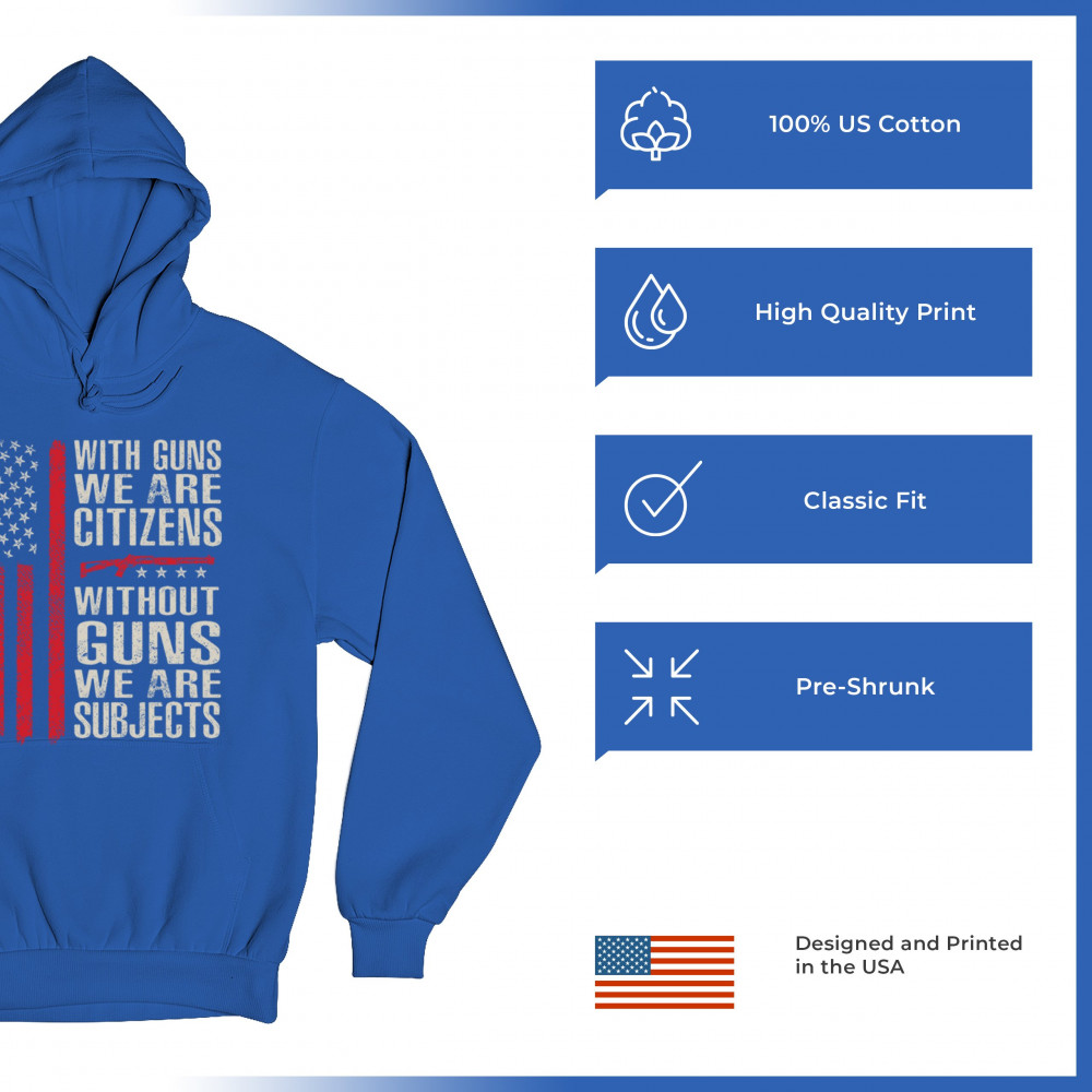 Make your voice heard with this powerful pro-2A design featuring an AR-15 graphic and distressed red American flag. The quote “With Guns We Are Citizens, Without Guns We Are Subjects†speaks directly to the heart of liberty and personal defense. A must-have for patriots, protestors, and gun rights supporters who defend the Constitution.