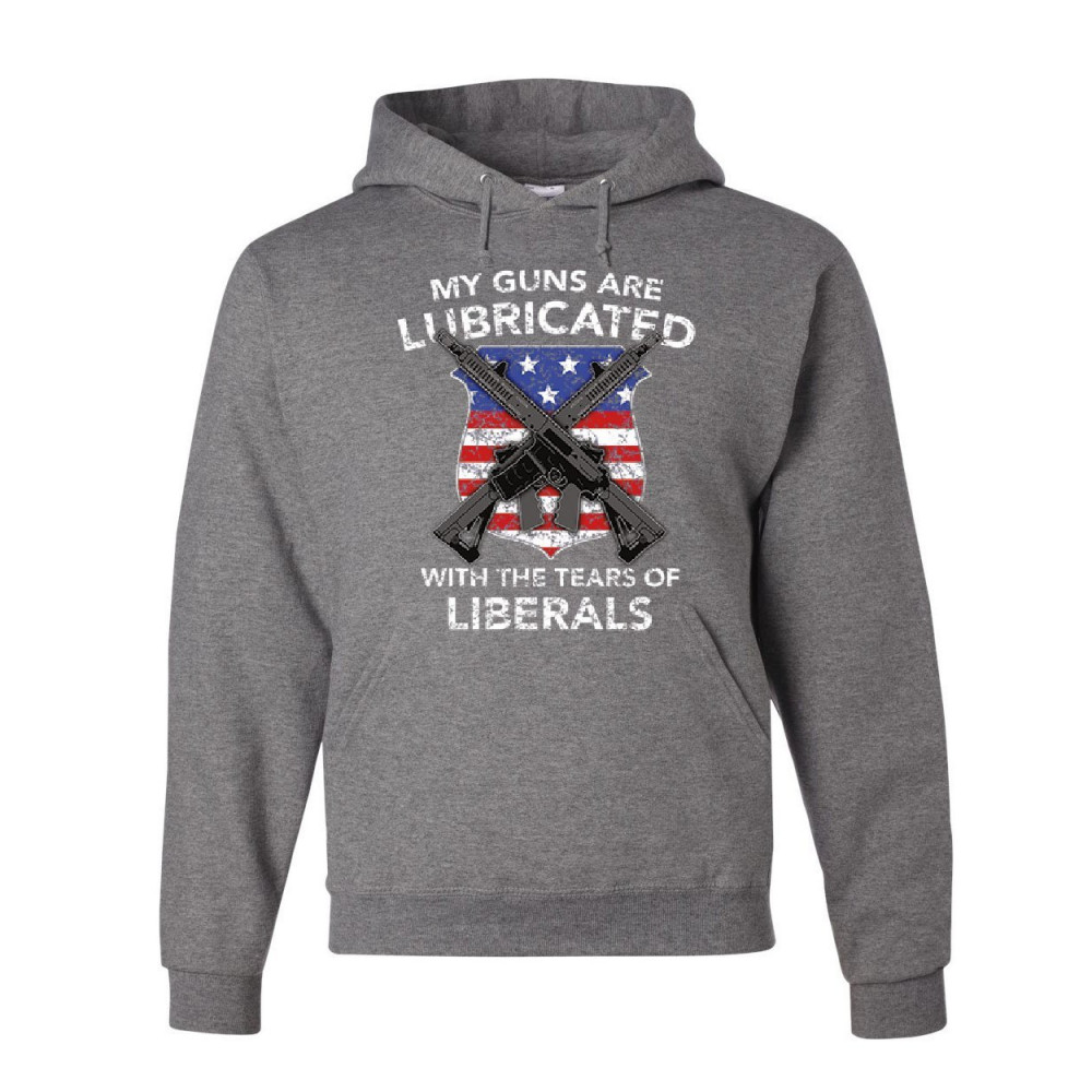 MY GUNS LUBRICATED WITH THE TEARS OF LIBERALS guns lubricated with tears of liberals hoodie 2nd amendment sweatshirt gray