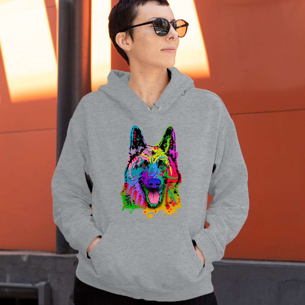 HAPPY GERMAN SHEPHERD sweatshirt andy maxx i love my dog best friend hoodie gray