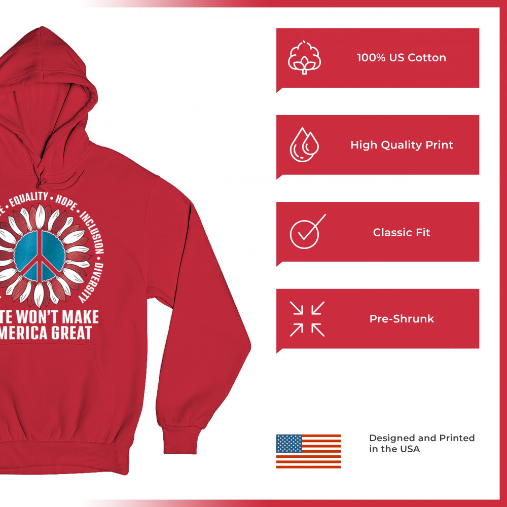 Embrace the message of love, equality, and unity with this eye-catching design. The sunflower and peace symbol represent a commitment to kindness and inclusion, rejecting hate and division. Perfect for those who support liberal values, this design is a bold statement against negativity and for a brighter future. Wear it proudly to show your belief in a diverse, united America. Let this design be a symbol of hope and progress for all.