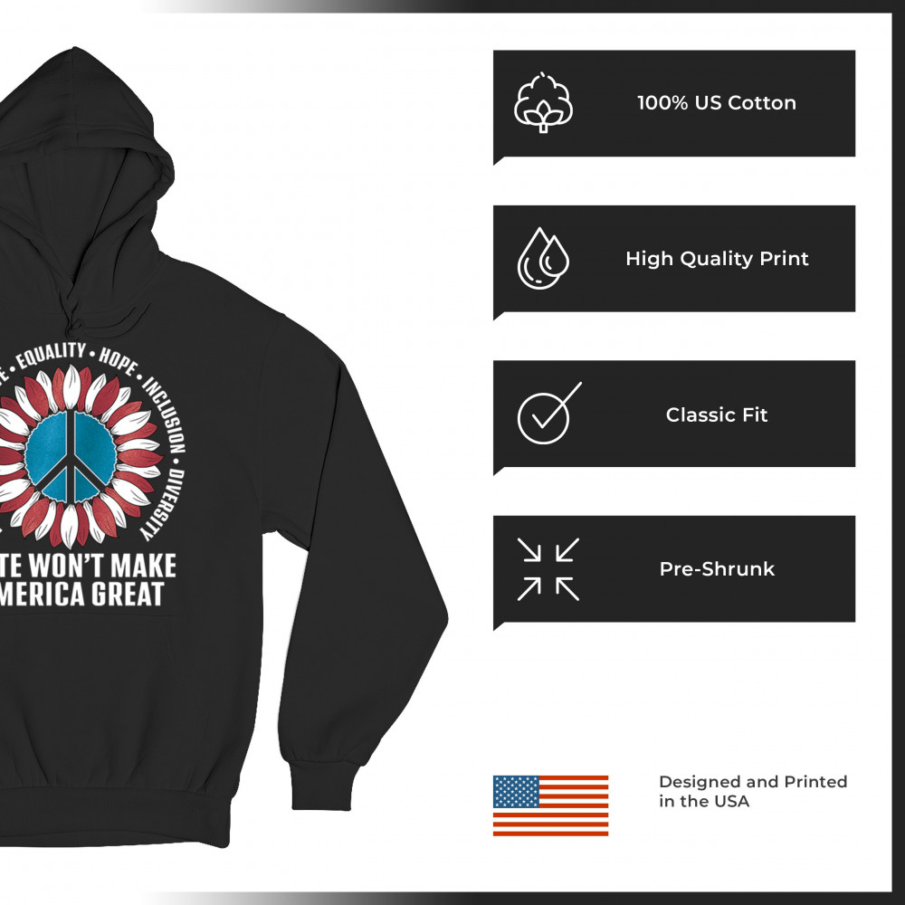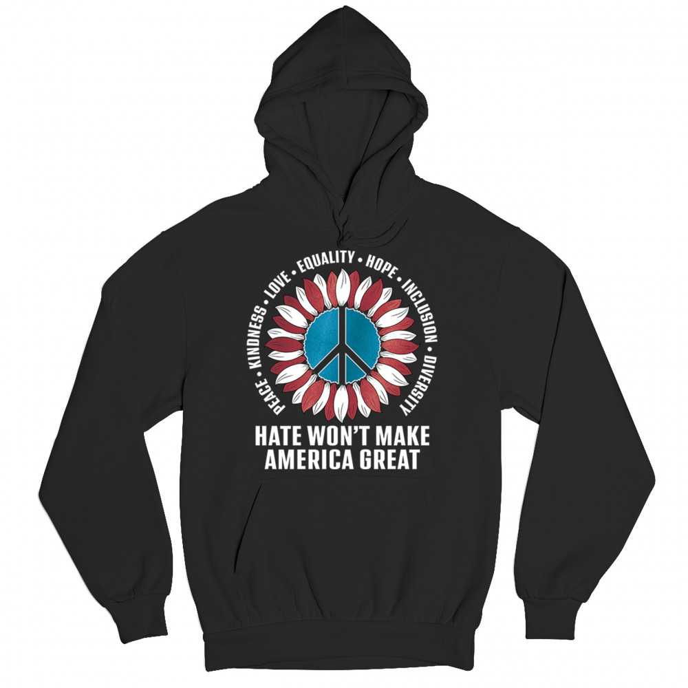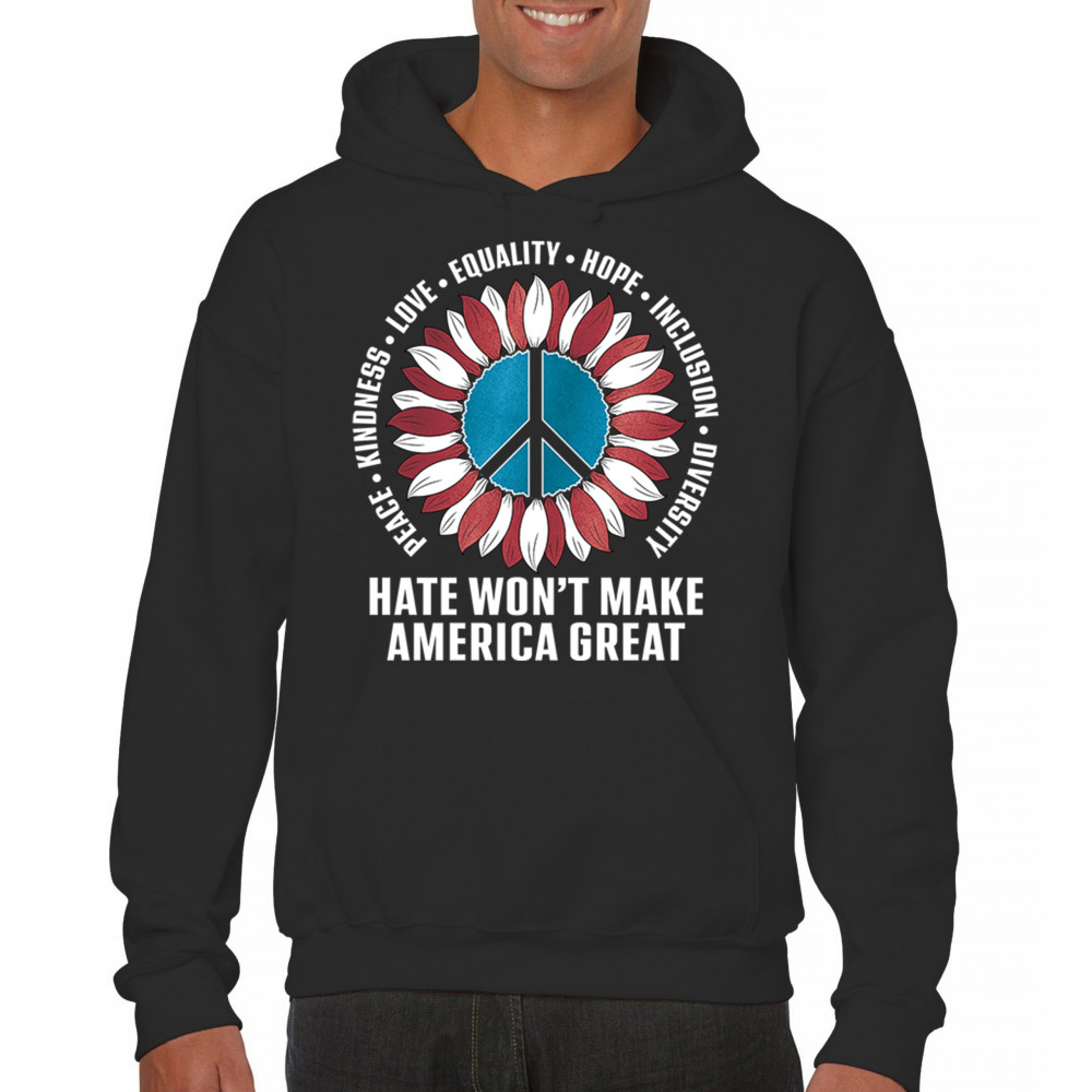 Embrace the message of love, equality, and unity with this eye-catching design. The sunflower and peace symbol represent a commitment to kindness and inclusion, rejecting hate and division. Perfect for those who support liberal values, this design is a bold statement against negativity and for a brighter future. Wear it proudly to show your belief in a diverse, united America. Let this design be a symbol of hope and progress for all.