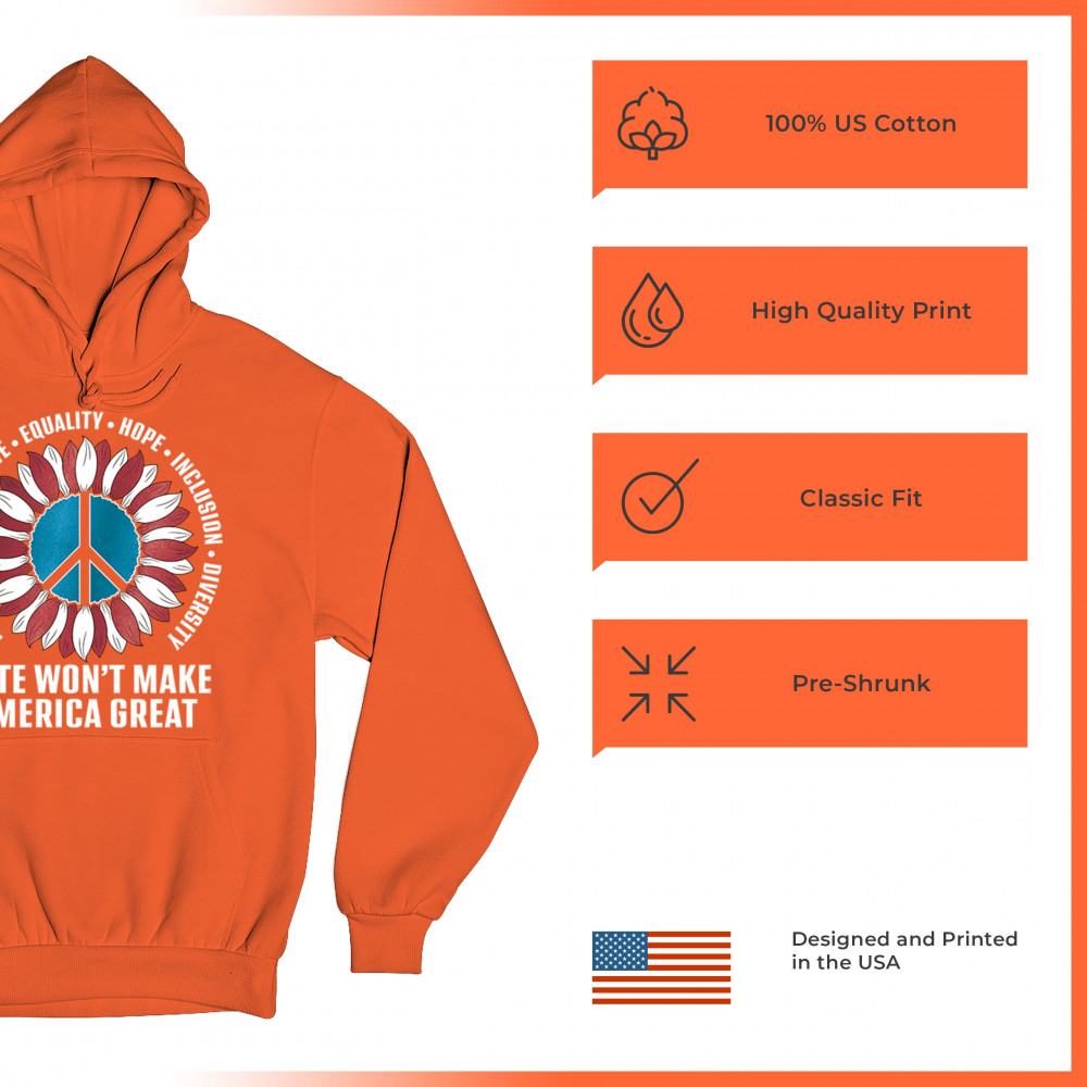 Embrace the message of love, equality, and unity with this eye-catching design. The sunflower and peace symbol represent a commitment to kindness and inclusion, rejecting hate and division. Perfect for those who support liberal values, this design is a bold statement against negativity and for a brighter future. Wear it proudly to show your belief in a diverse, united America. Let this design be a symbol of hope and progress for all.