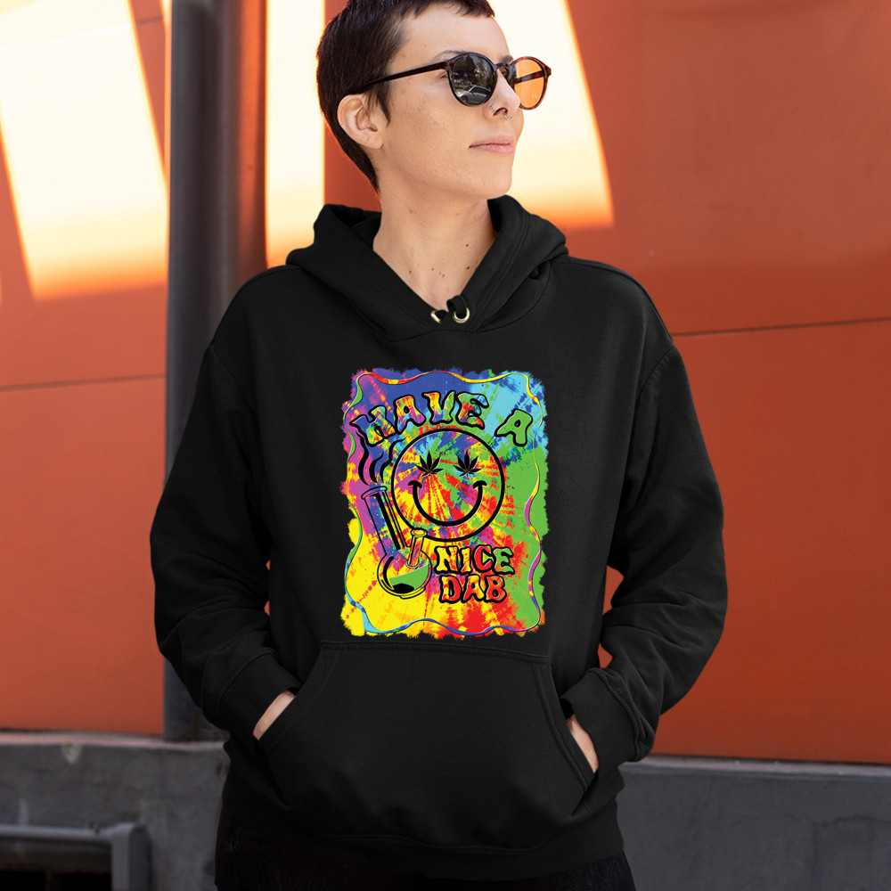 HAVE A NICE DAB sweatshirt 420 happy face hitting marijuana weed bong hoodie black