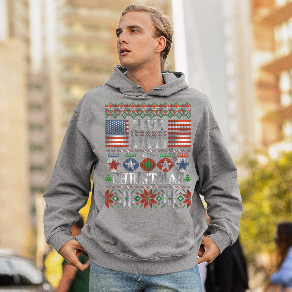 HAVE AMERI CHRISTMAS sweatshirt american flag ugly sweater patriotic hoodie gray