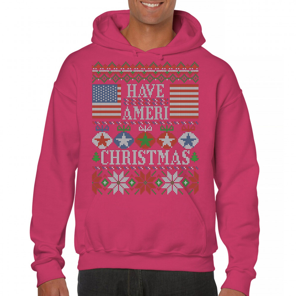 HAVE AMERI CHRISTMAS sweatshirt american flag ugly sweater patriotic hoodie pink