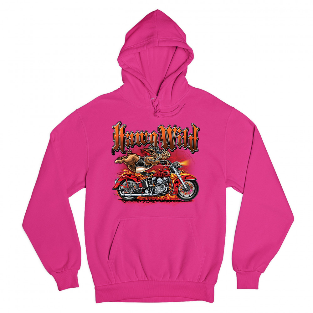 HAWG WILD sweatshirt born to be wild biker rider motorcycle enthusiast hoodie pink