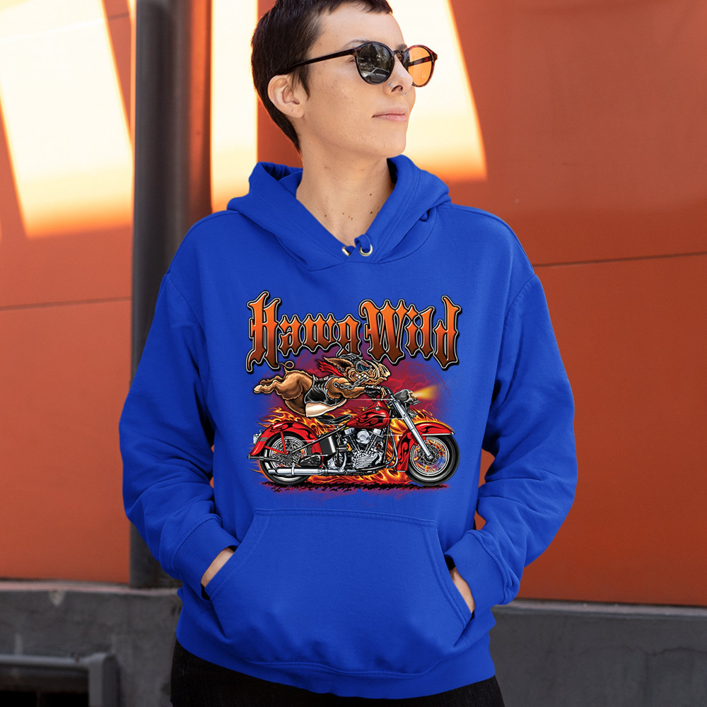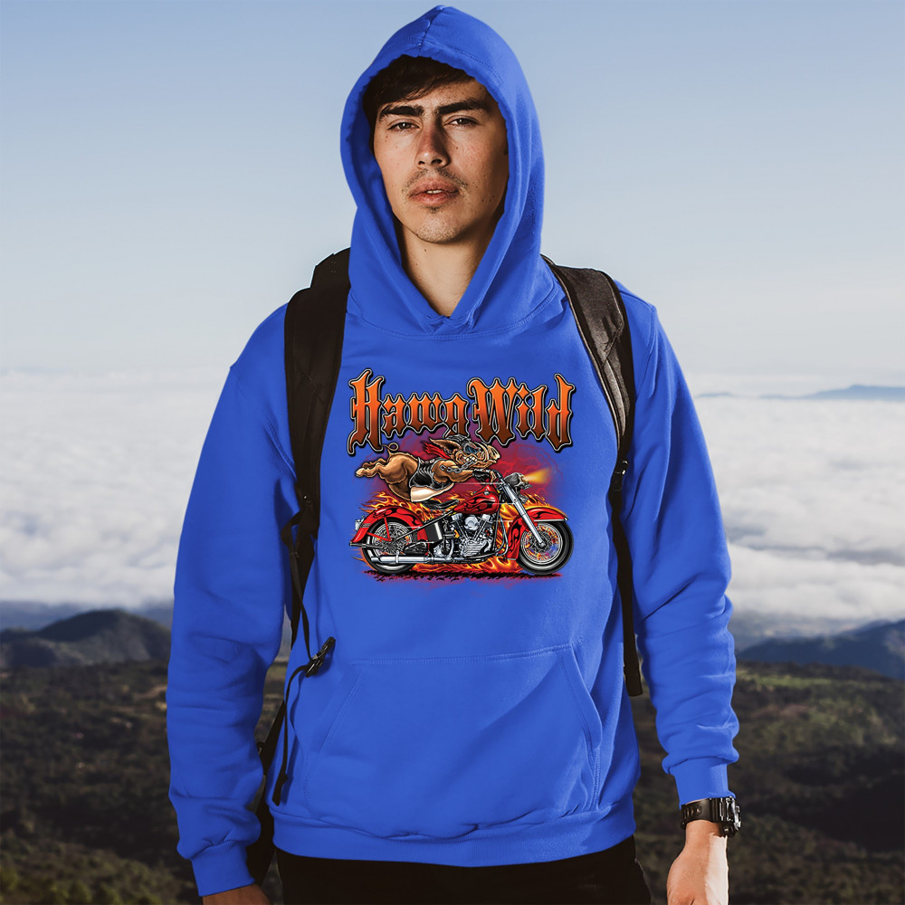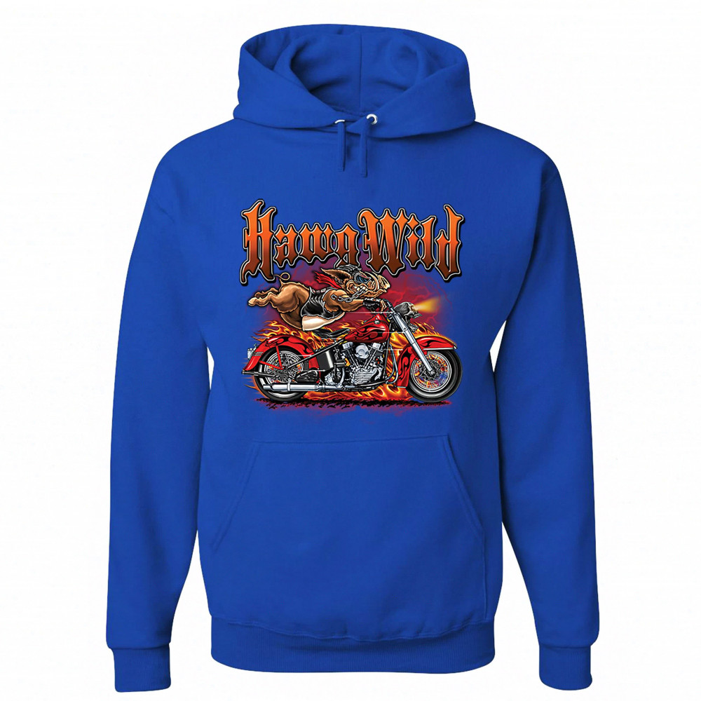 HAWG WILD sweatshirt born to be wild biker rider motorcycle enthusiast hoodie royal blue