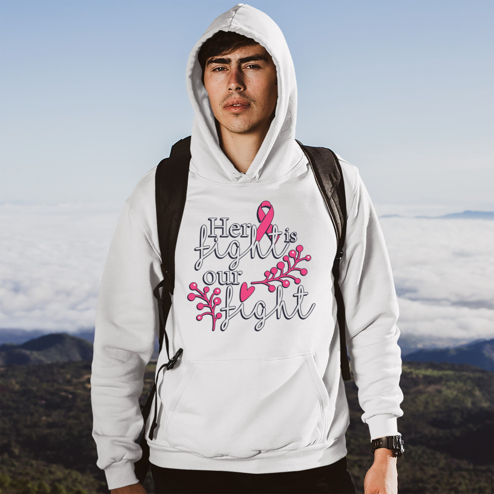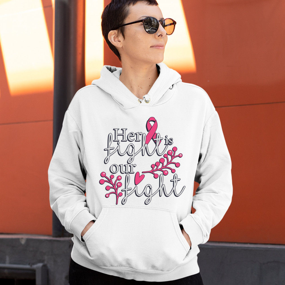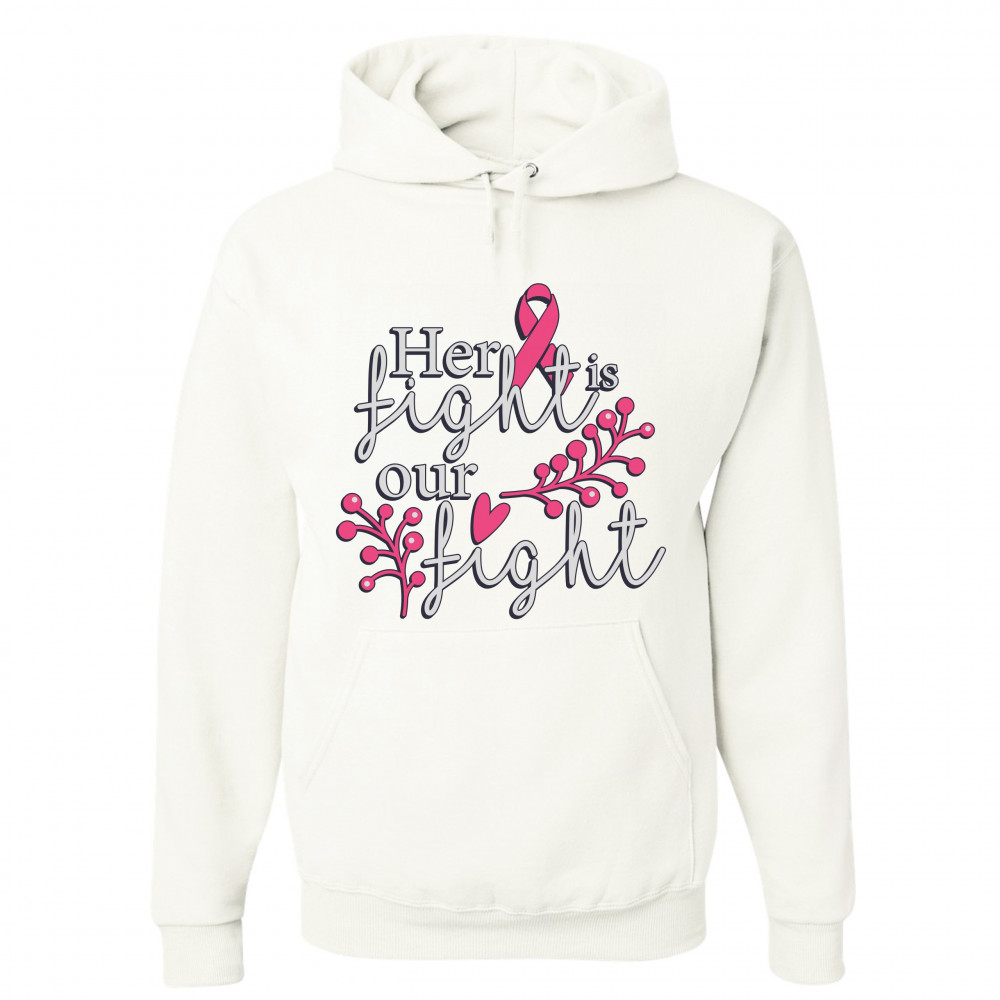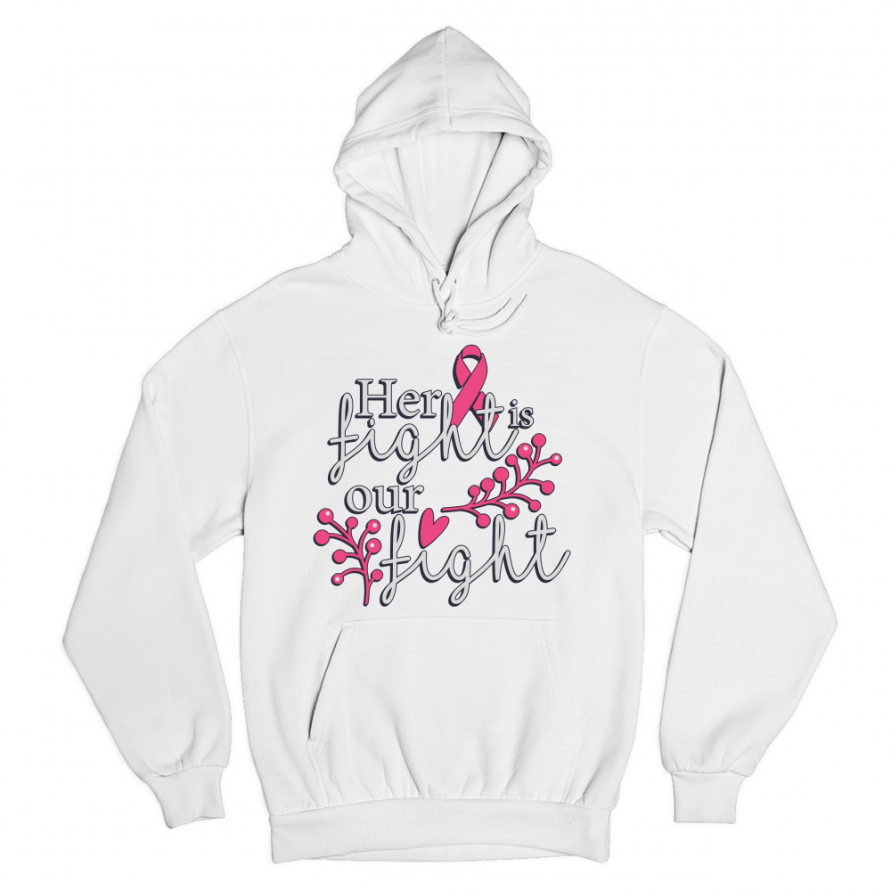 HER FIGHT IS OUR FIGHT sweatshirt breast cancer support pink ribbon hoodie white