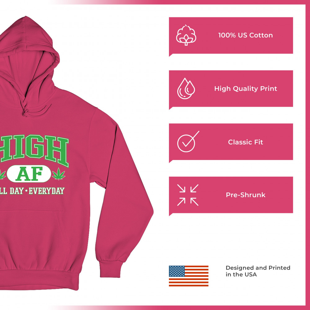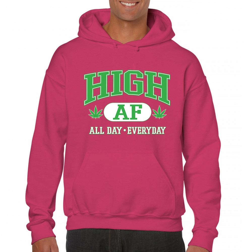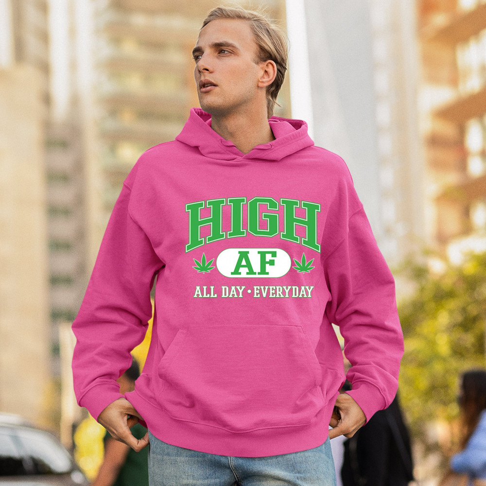 Stay lifted in style with this HIGH AF design, complete with bold letters, cannabis leaves, and the iconic “All Day · Everyday†slogan. It’s a loud, funny, and chill tribute to the 420 lifestyle—perfect for stoners, festival goers, and herb-loving free spirits who wear their vibe with pride.