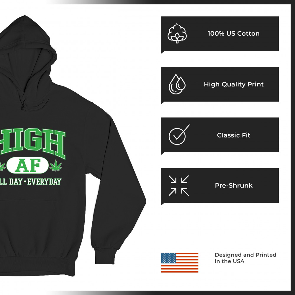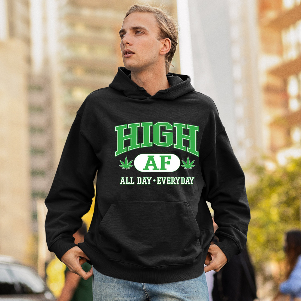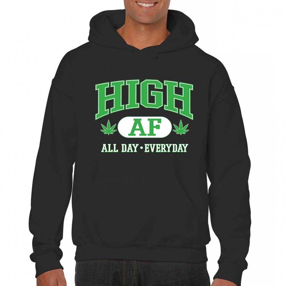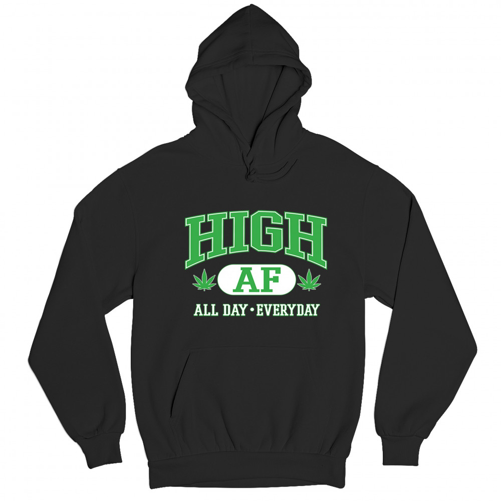 HIGH AF ALL DAY EVERYDAY sweatshirt cannabis leaf stoner 420 thc kush hoodie black