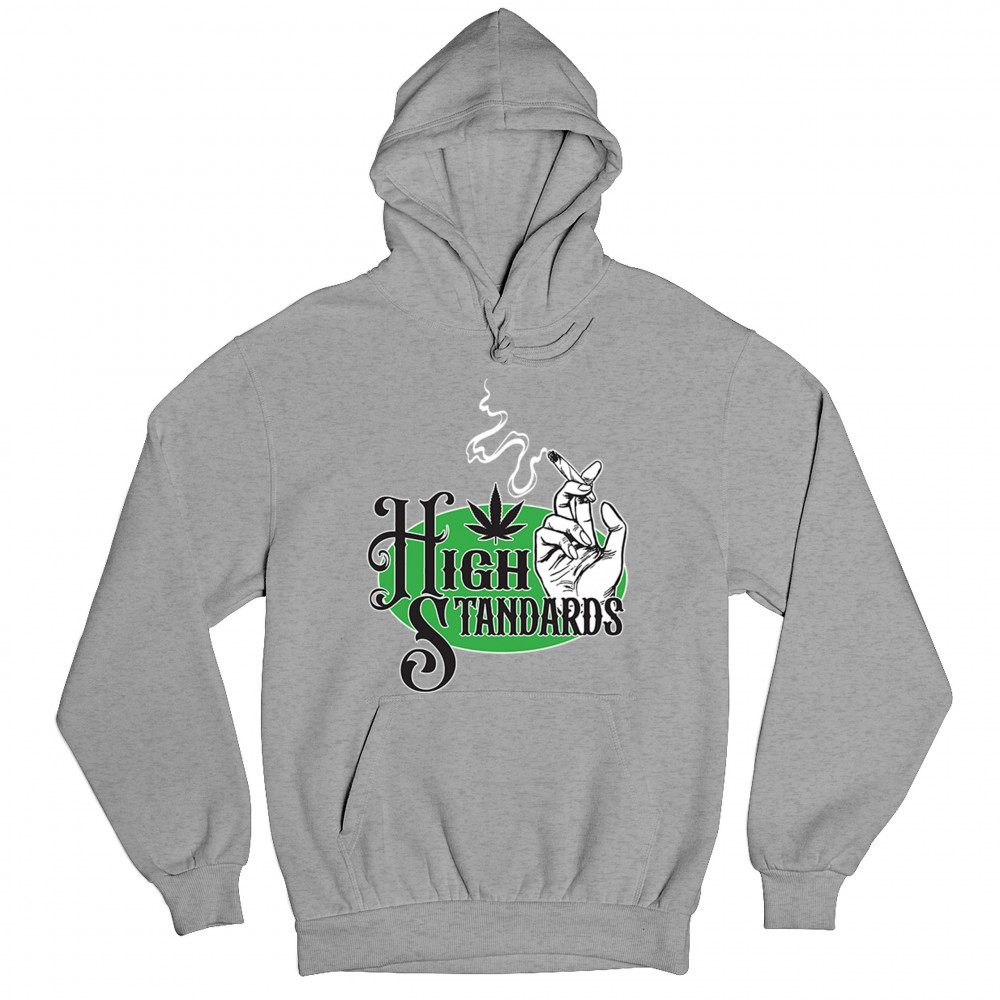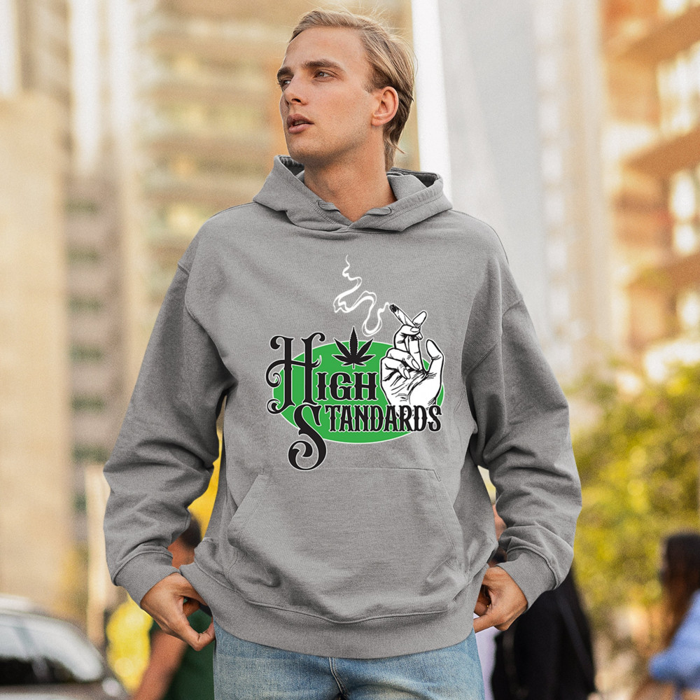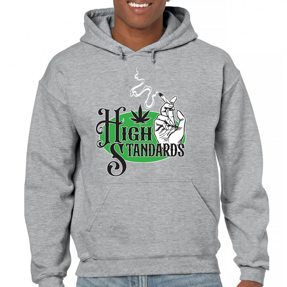 High Standards weed design with blunt humor and stoner pride. Features joint, cannabis leaf, pothead attitude, and classy chillout vibes.