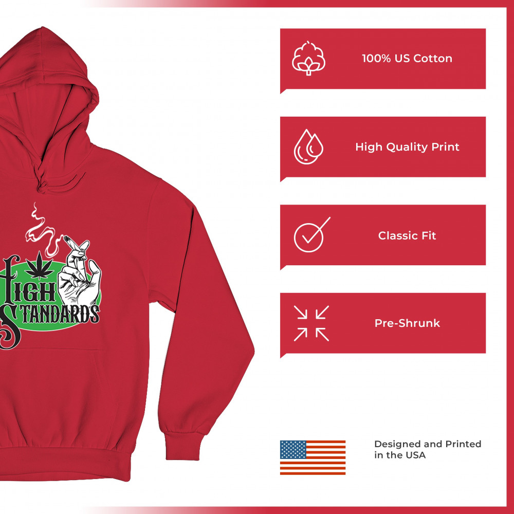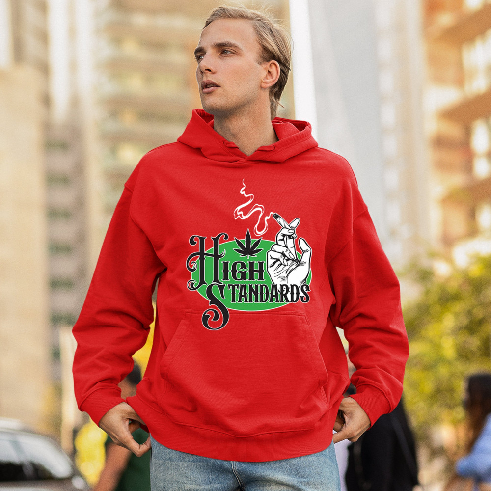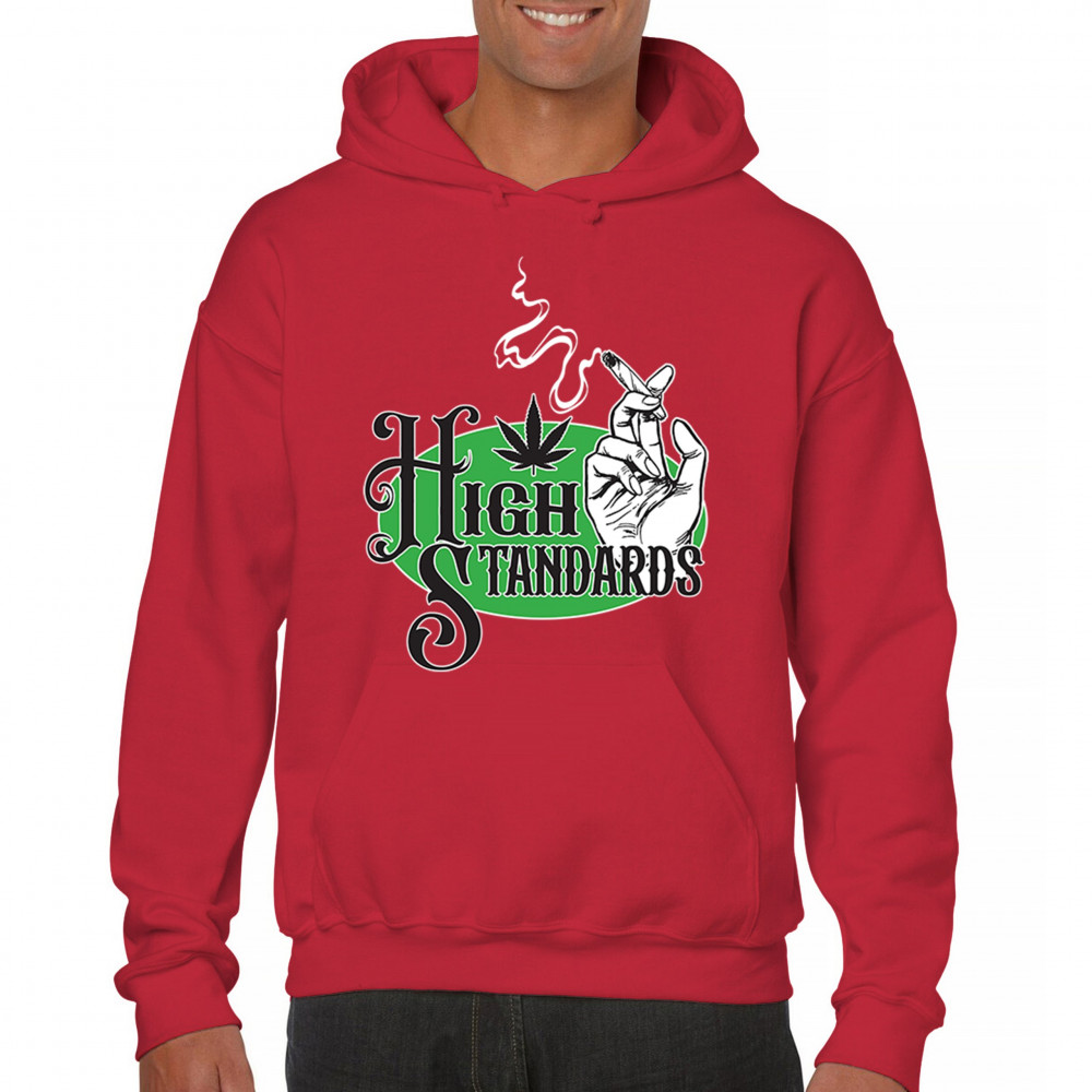 High Standards weed design with blunt humor and stoner pride. Features joint, cannabis leaf, pothead attitude, and classy chillout vibes.