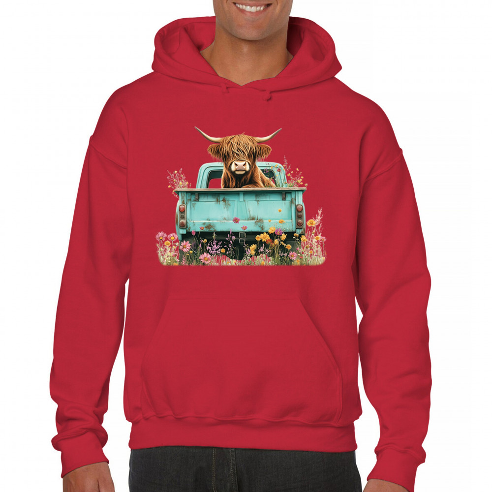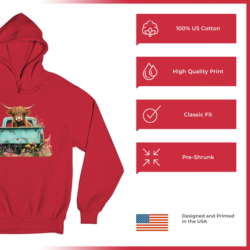Celebrate rustic charm with this Highland Cow truck design, combining farmhouse floral truck art, boho ranch vibes, and country farmhouse shirt appeal. Perfect for cow lovers, barn style enthusiasts, and small town rural living. A vintage truck cow design that’s both cozy and stylish.