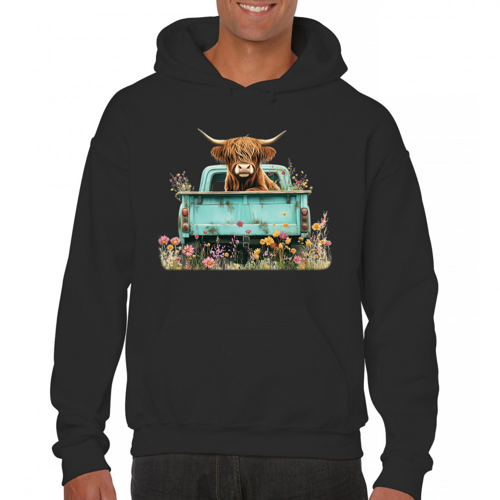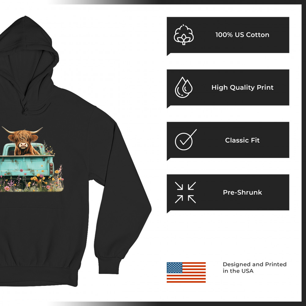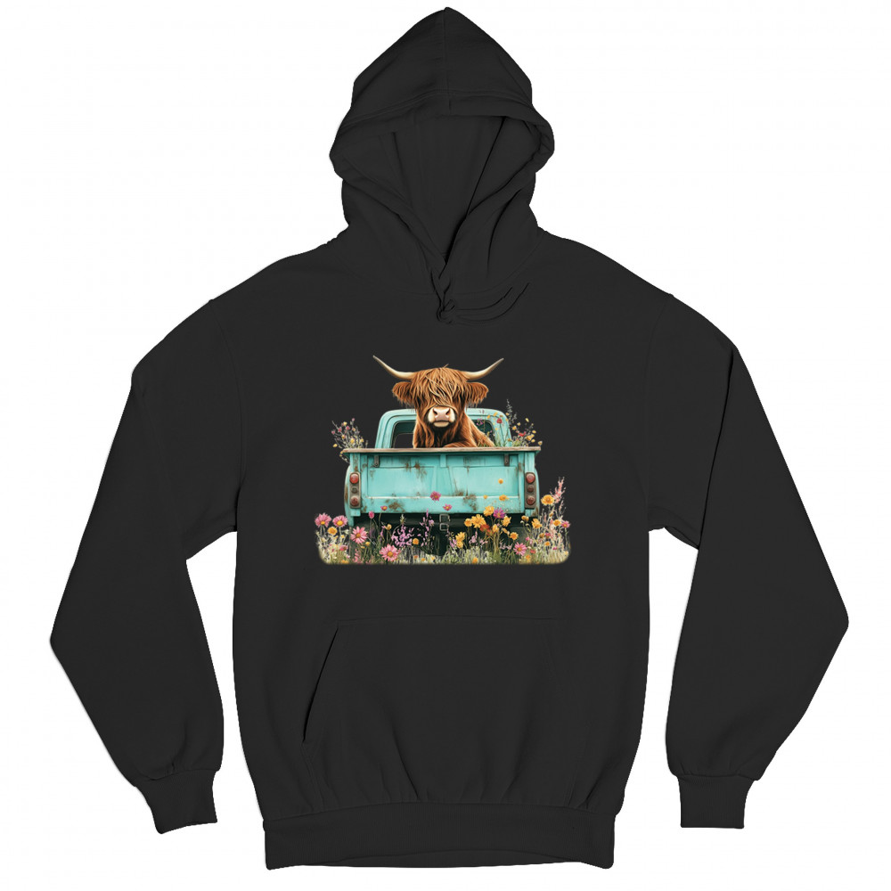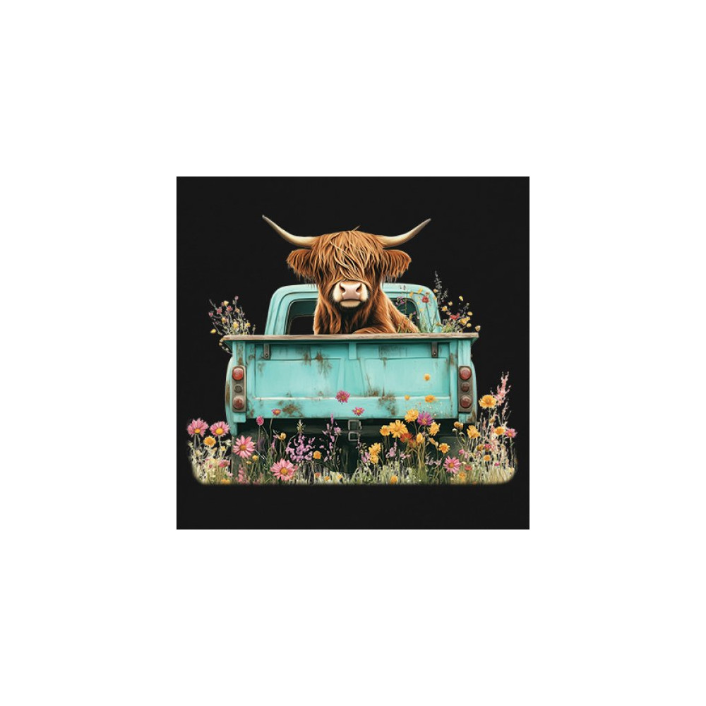 Celebrate rustic charm with this Highland Cow truck design, combining farmhouse floral truck art, boho ranch vibes, and country farmhouse shirt appeal. Perfect for cow lovers, barn style enthusiasts, and small town rural living. A vintage truck cow design that’s both cozy and stylish.