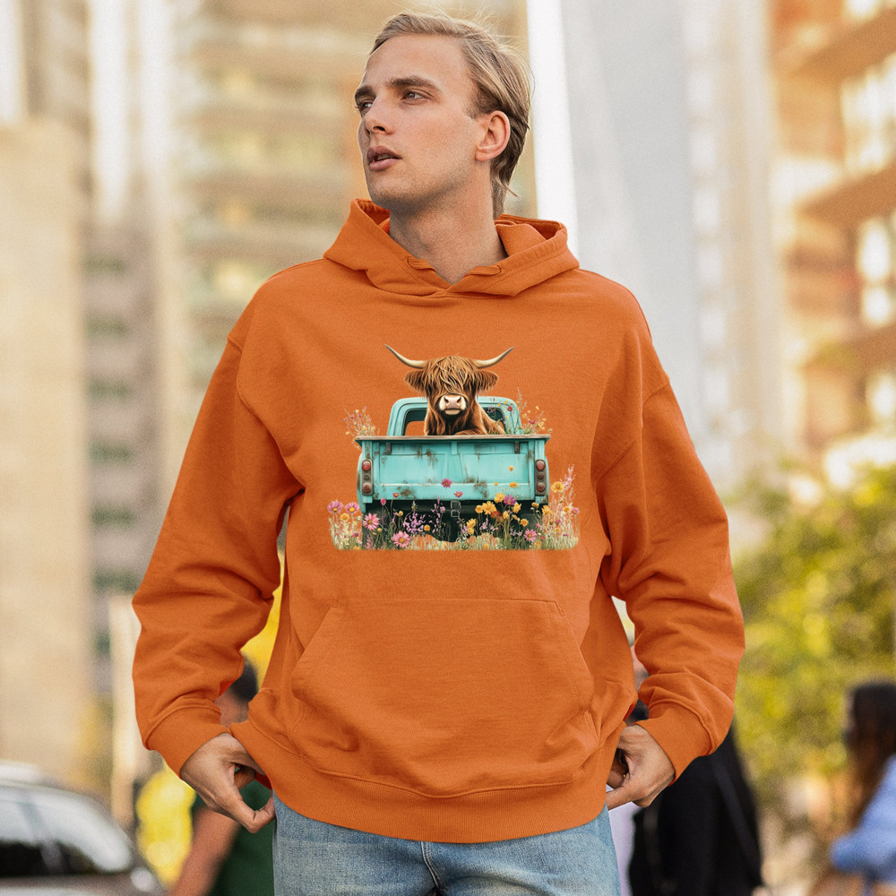 Celebrate rustic charm with this Highland Cow truck design, combining farmhouse floral truck art, boho ranch vibes, and country farmhouse shirt appeal. Perfect for cow lovers, barn style enthusiasts, and small town rural living. A vintage truck cow design that’s both cozy and stylish.