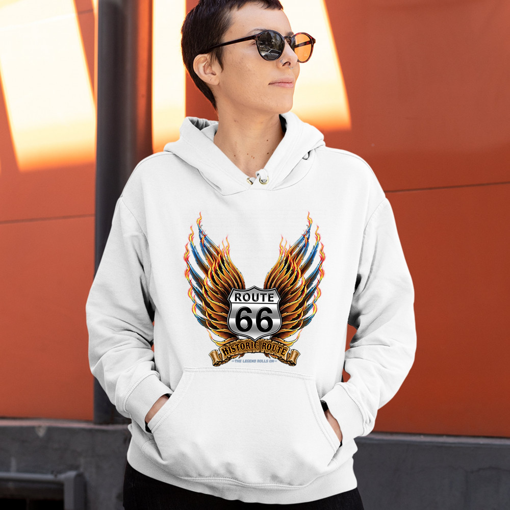 HISTORIC ROUTE 66 sweatshirt the legend rolls on the mother road hoodie white