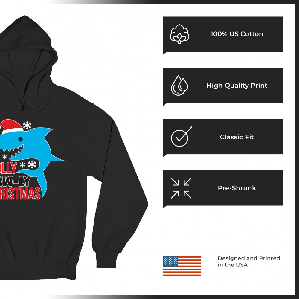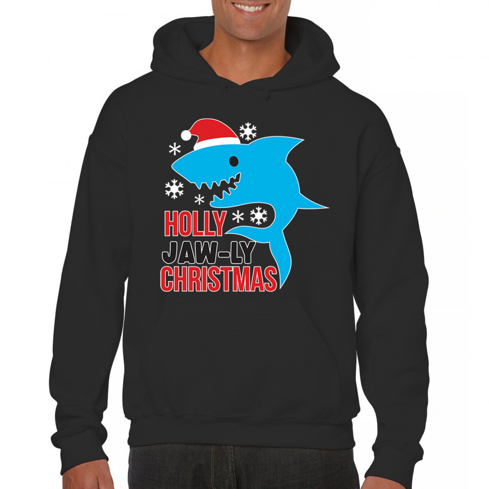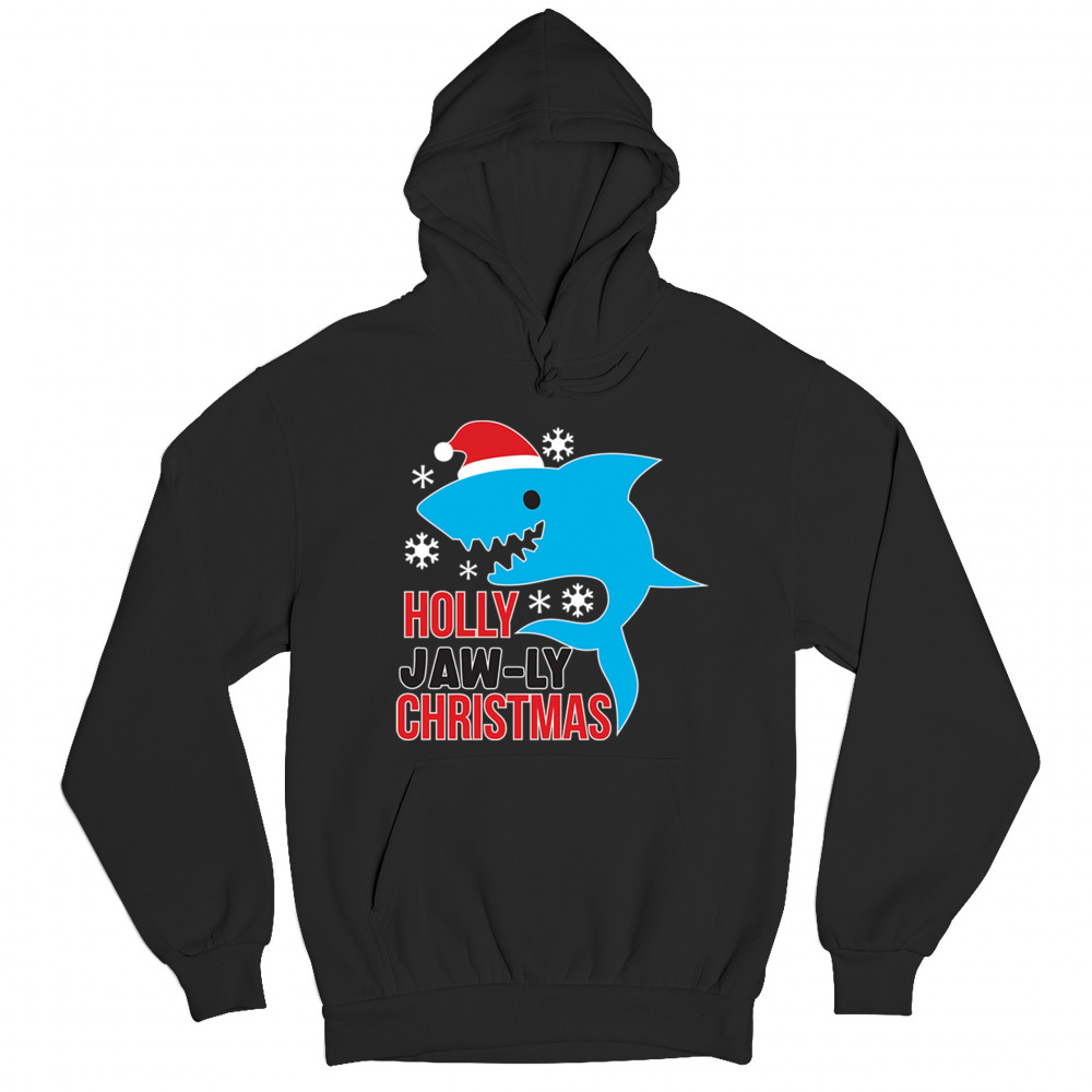 HOLLY JAW-LY CHRISTMAS unisex hoodie xmas shark ugly sweater party jaws black