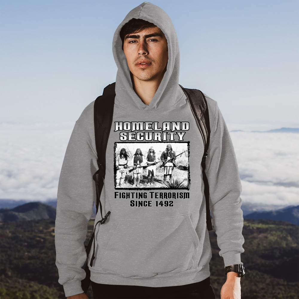 HOMELAND SECURITY sweatshirt native american indigenous patriotic hoodie gray