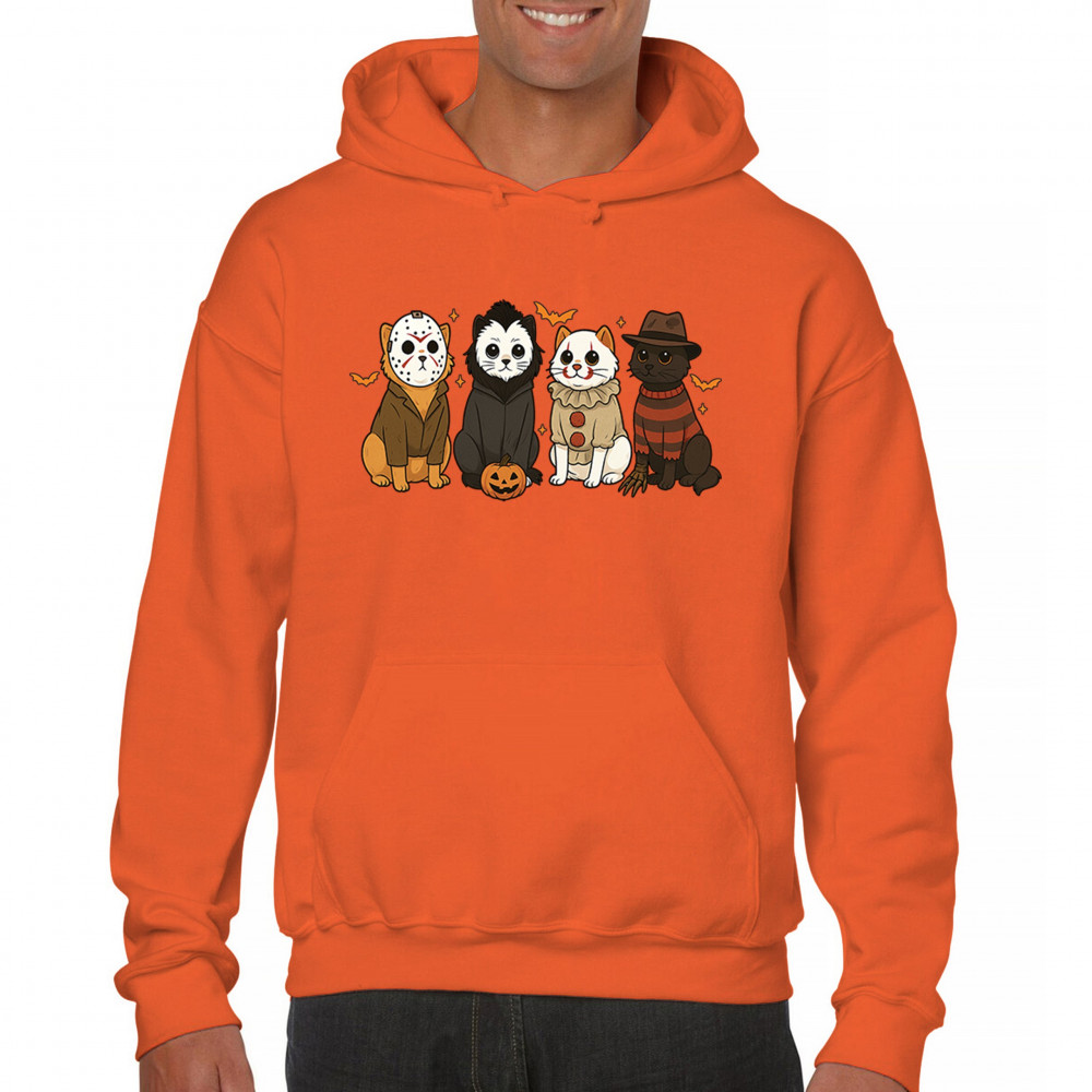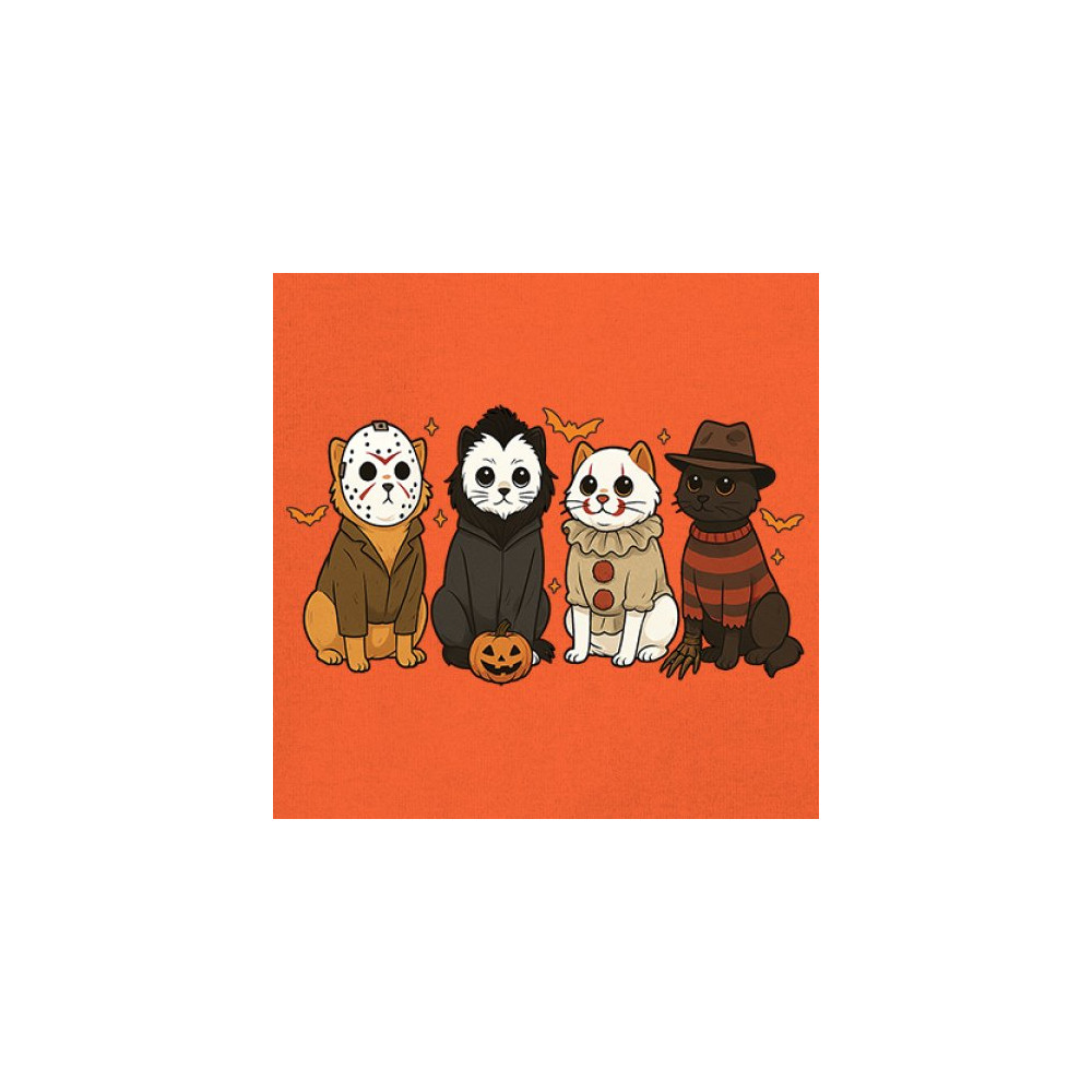 Get into the Halloween spirit with this Horror Cats Halloween design featuring spooky felines in creepy costumes. From Jack o Lantern details to Haunted House energy, it’s perfect for celebrating October 31 with festive style. A playful blend of Halloween vibes, autumn night chills, and witch-inspired magic, this design makes a great Halloween outfit for cat lovers and spooky fans alike.