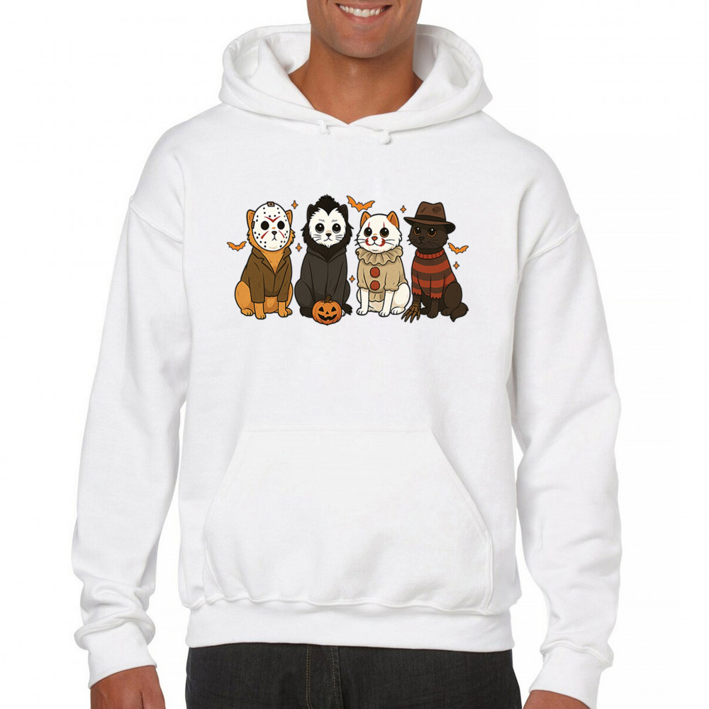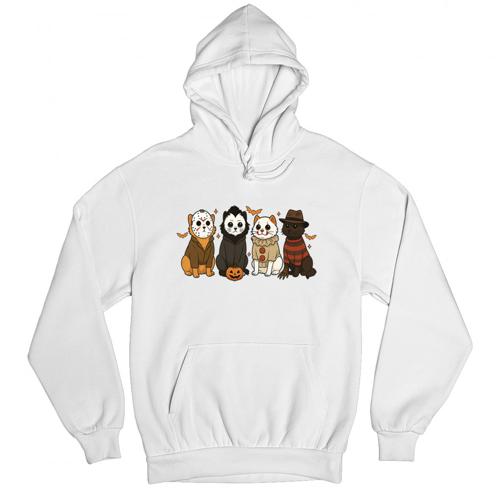 HORROR CATS unisex hoodie trick or treat halloween spooky pumpkin head white