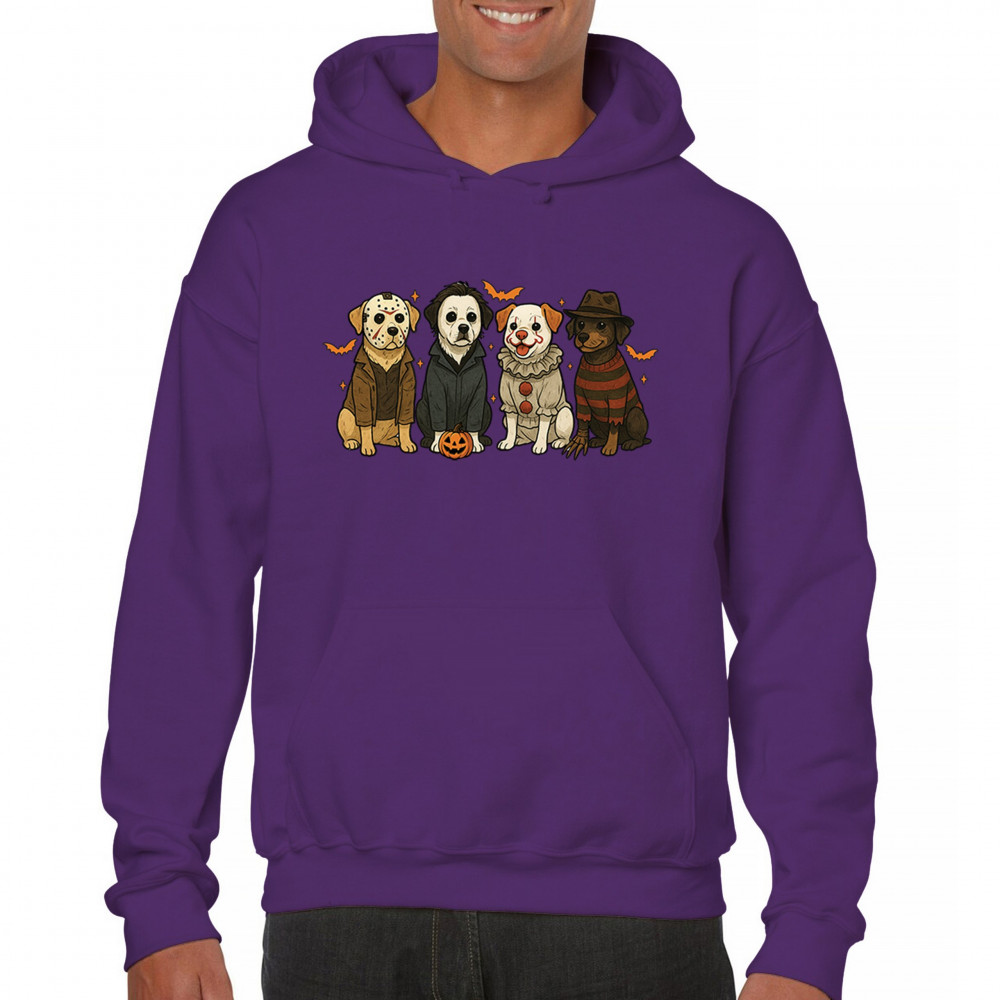 Celebrate Halloween with the Horror Dogs design featuring pups in creepy costumes inspired by spooky icons. A perfect pick for October 31 haunted house visits, autumn nights, or parties full of Halloween vibes. Whether you love dogs, witches, or pumpkin head fun, this festive design makes a playful addition to the spooky season.