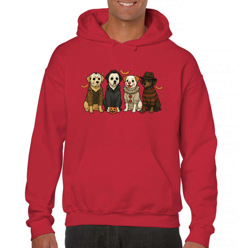Celebrate Halloween with the Horror Dogs design featuring pups in creepy costumes inspired by spooky icons. A perfect pick for October 31 haunted house visits, autumn nights, or parties full of Halloween vibes. Whether you love dogs, witches, or pumpkin head fun, this festive design makes a playful addition to the spooky season.