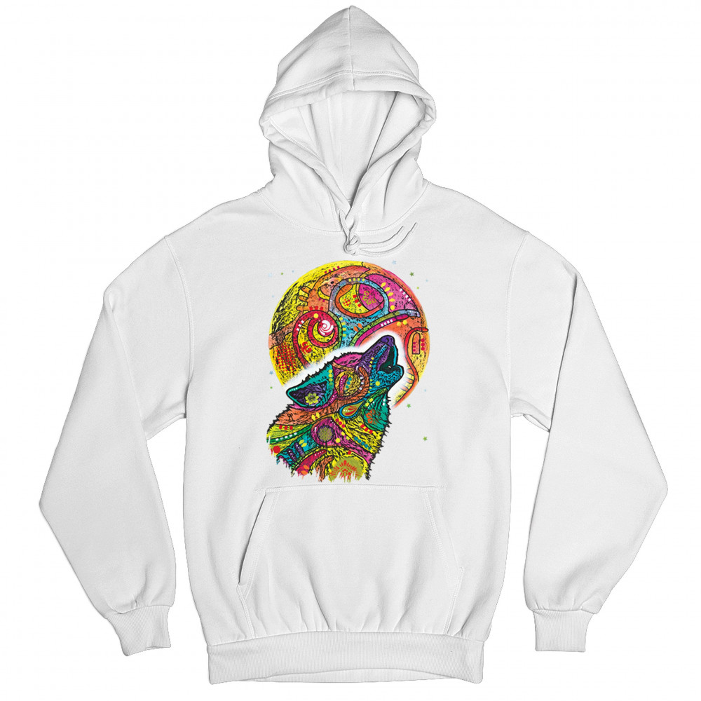 HOWLING WOLF AND MOON sweatshirt dean russo colorful wild life hoodie white